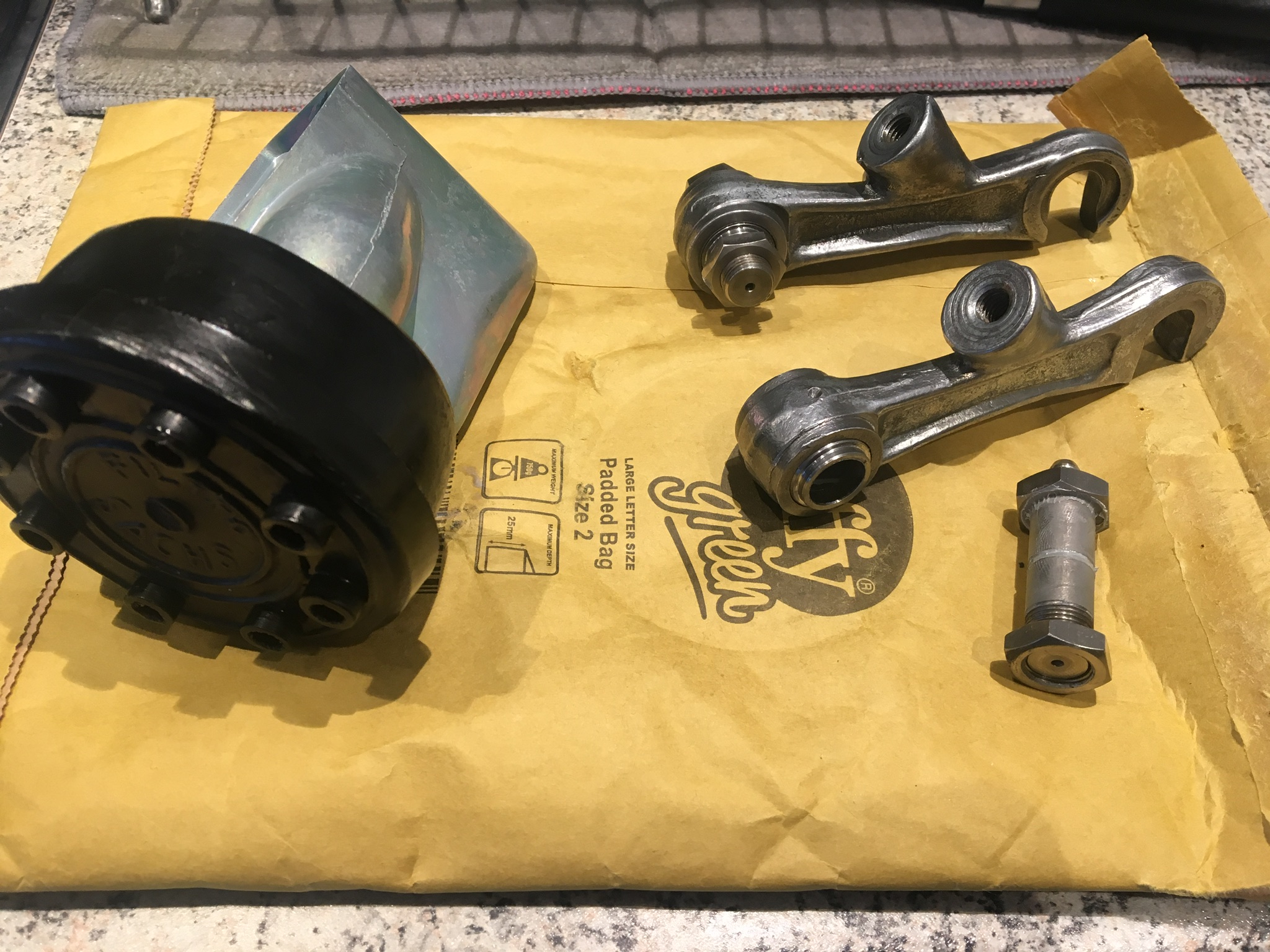 Bottenlänkarna hemma efter nya delar svarvade och i pressade. Kanon jobb. Orginal va helt slut. Så nu slipper vi större slitage och glapp!