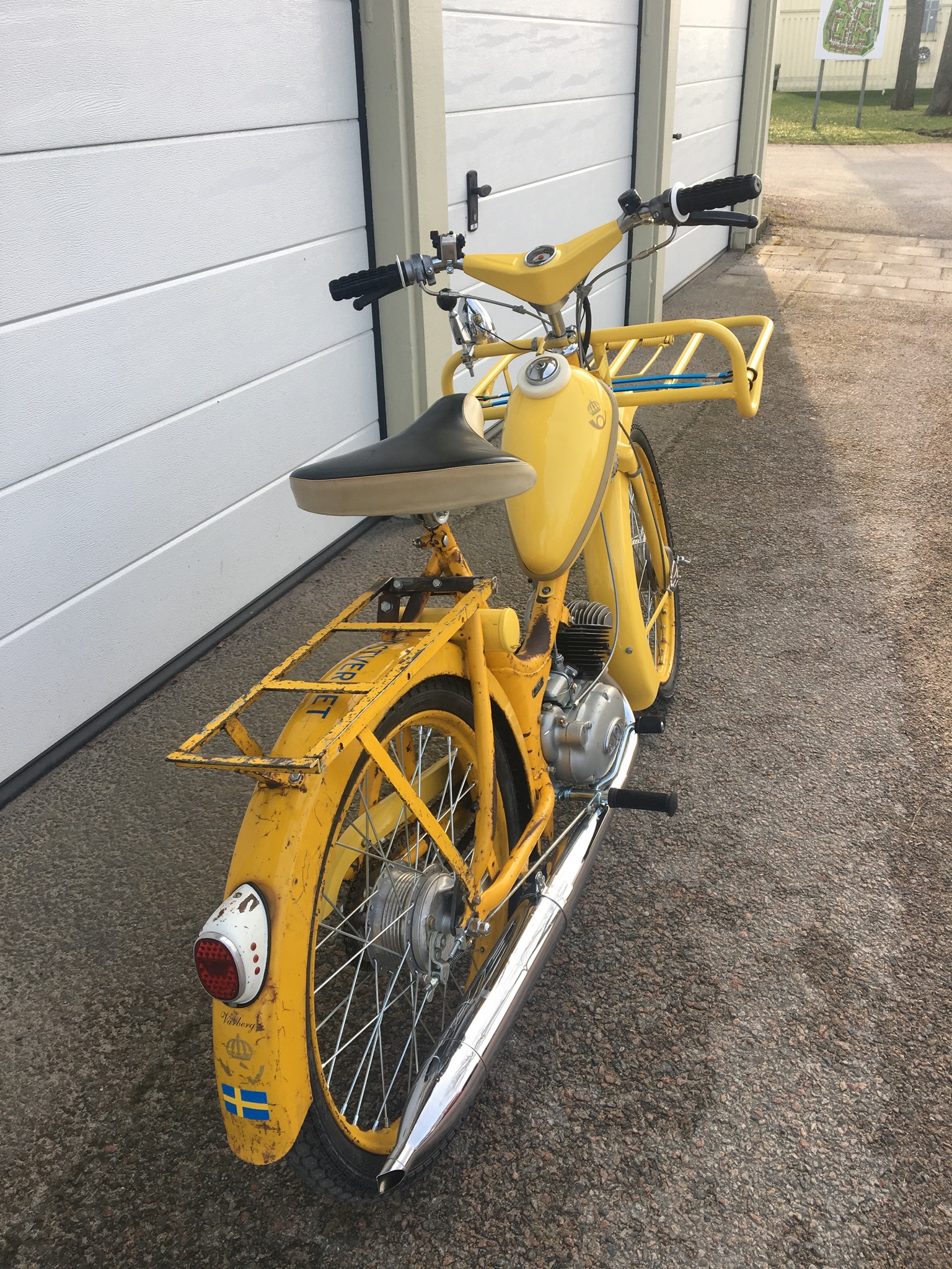 Jaha då vart lite delar lackade. Vid påsk så lackar man ju självklart GULT!? Nu får vi hoppas att färgkoden stämmer någorlunda med resterande delar som har orginal lacken. Annars ska Robban o sture-tture få sig en omgång MEN de märker vi imorn! Nu ska jag bara försöka få bort 1 lager hammarlack från pakethållaren och fäste. Har läst om lite olika metoder, har någon något tips? Vet att det ev inte går o få bort.. Men de går relativt enkelt o skrapa med kniv så bör kunna lösas upp någorlunda. Glad påsk på er.