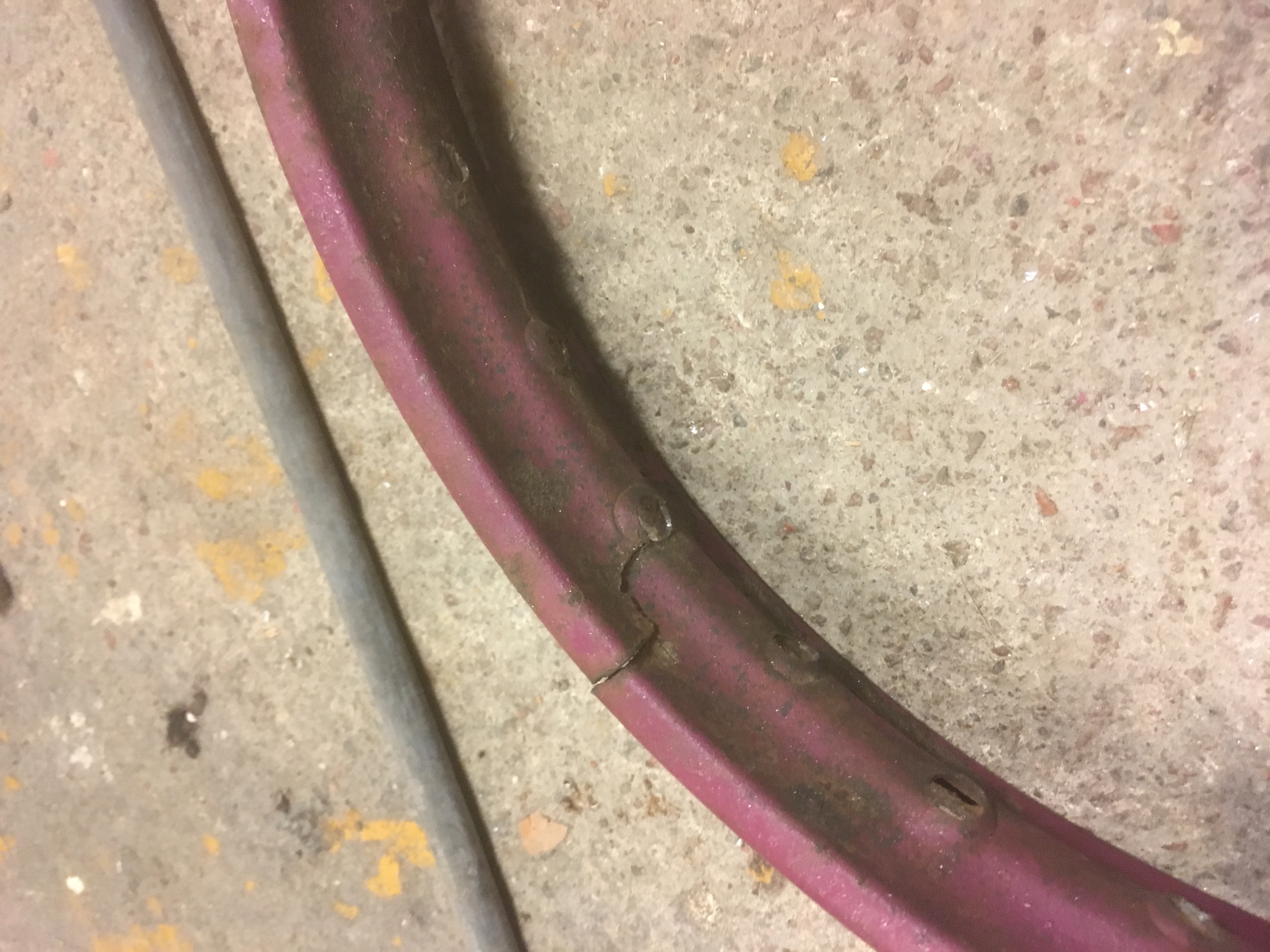 Gamla bakfälgen var riktigt dålig. Sprickor på flera ställen och rostig.