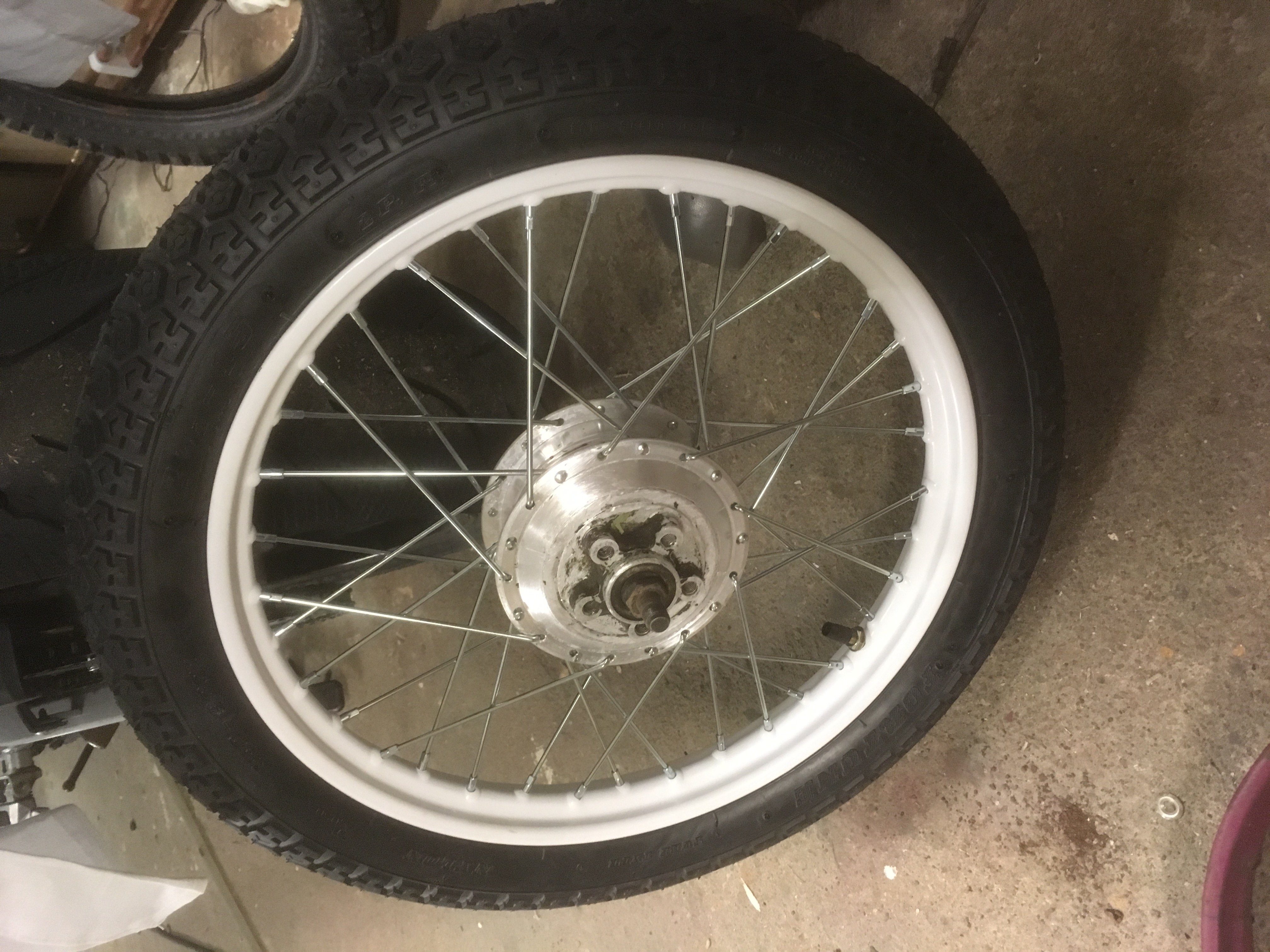 Originalnavet återanvändes och fick nya ekrar samt fälgbana. Skaplig skillnad. Nytt fälgband, slang, däck och bromsbackar.