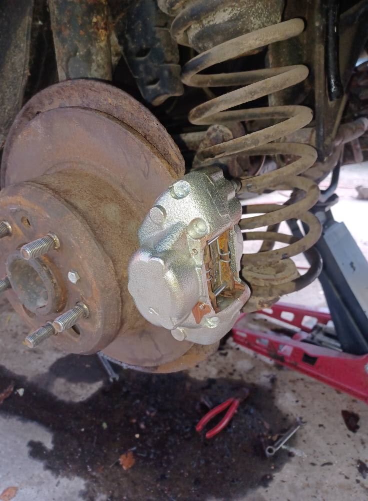 Så monterade detta. Även konstaterat att oket med avdragen luftnippel hade nya belägg och skivan får duga.