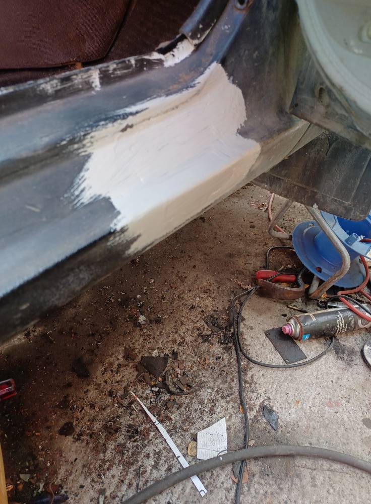 Inte stort alltså typ 10mm vart väl 3x3 efter grovslip vart framme... Ska erkänna tänkte först skit samma lite karosserikitt och löst....