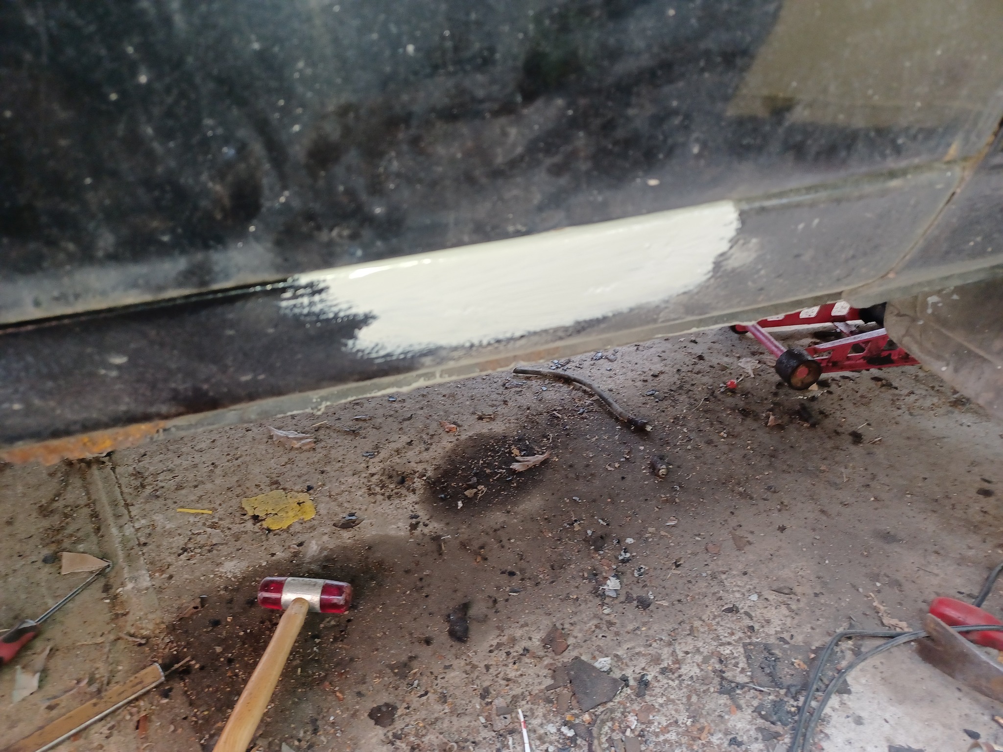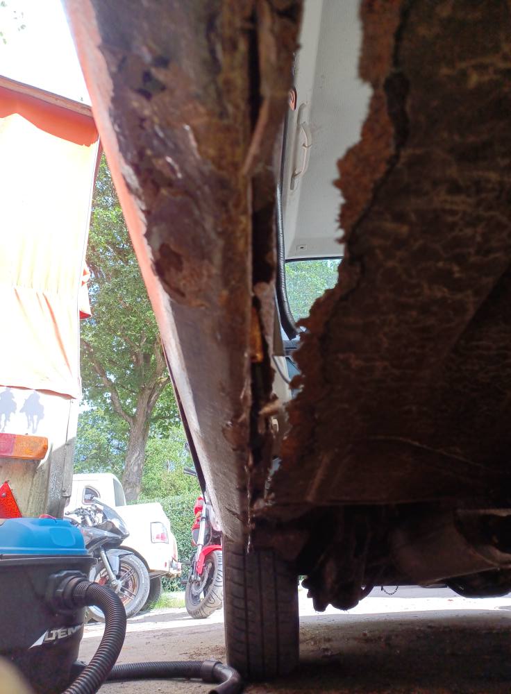 Börjar på vänstersidan... Hunnit en bit. Siktar på bli klar med vänstersidans besiktningsrost idag.