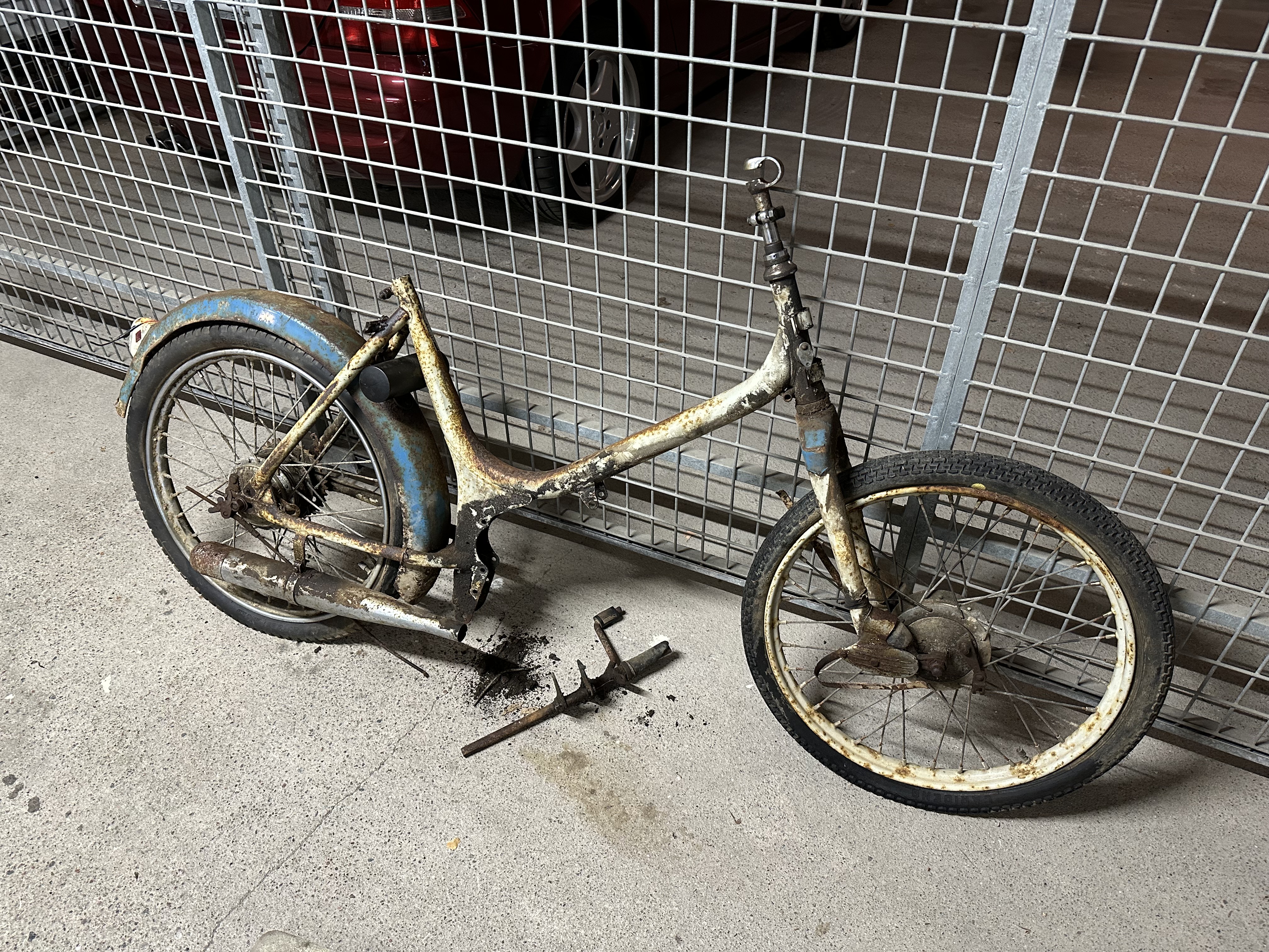 Sista dagen på semestern och fått en burk rostchock levererad av en polare som jobbar i marin miljö och som ska vara bra. Riven blev den inte under semestern, men bara framhjul och ljuddämpare kvar som sitter fast. Tänker att allt kommer att gå att tvätta hemma i diskhon eller duschen, men ramen måste nog få hänga med till OK. Har inte testat Isotrol än, men kommer börja med lyset fram. Enkelt att tvätta och lacka på balkongen.Skåning skrev: ↑08 jul 2025, 06:09 När man önskar / behöver god hjälp utav ett "kem" så välj gärna något som är mera anpassat för uppgiften än en multispray.![]()