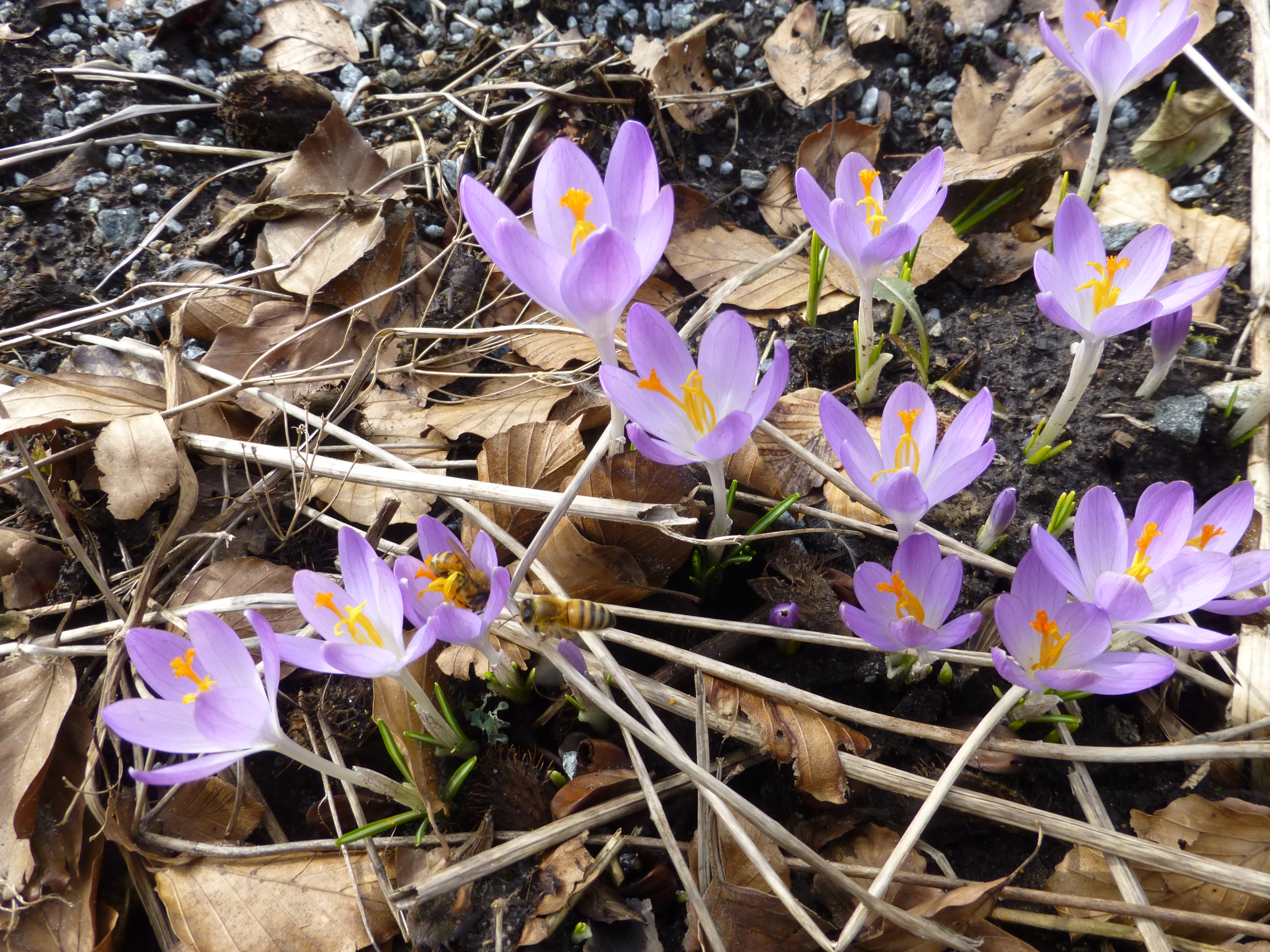 Rena sommarvädret idag, 13,5 grader i skuggan. Kryllar av bin i blommorna och första blåsippan slår ut. . .