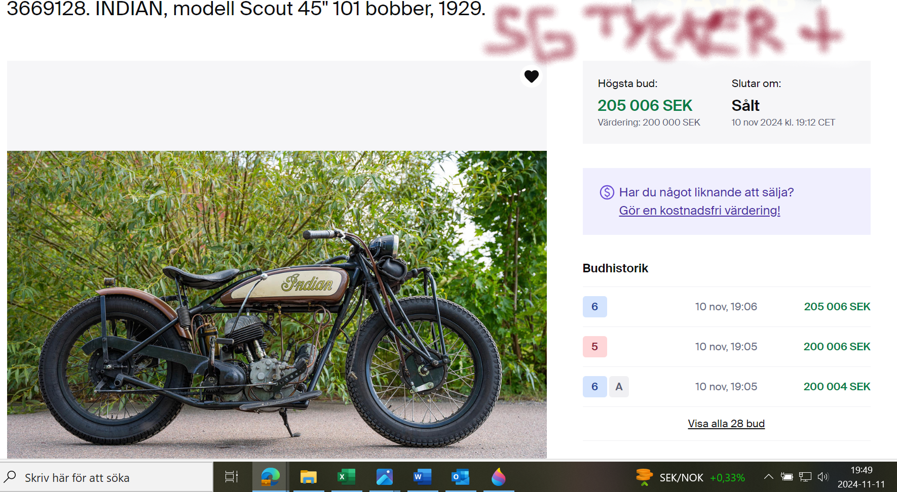 Var en trevlig motorintresserad som hade, tror han nog ville ha mer än aktion gav men det går att hitta billigare. Sen kommer det ta tid och pengar att få ihop, min 1930 NV visst ram och gaffel men Spjällstaket och Rajah delar är ej vanliga så. Kommer ta tag i denna senare.2st K50 och NV5 och en MCB 1293 E-type samt DBS Sport. Sen ett 27tal mc, och för mycket bilar