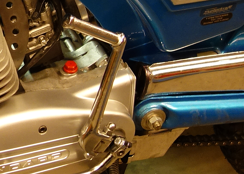 Jag har fått till en bra motorupphängning. Men svingen blir ju inte starkare av det så vi får se om den kroknar och behöver förstärkas. Svingen är ganska klen på KS50-517. Jag skulle inte ha ett dugg emot att göra en egen snygg sving av aluminium om det behövs. Det krävs trots allt inte lika stadiga grejor som på en Sporthoj så det är nog inga problem och så kan det bli lite unikt och snyggt utan att behöva förstöra utseendet på moppen.