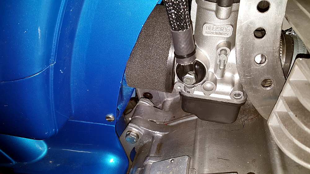Motorn går lite fett så att jag skulle behöva gå ner i huvudmunstycke. Men så lätt kommer den inte undan utan jag ökar inkommande luftmängd istället genom att använda ett skumfilter utan gavlar som koppling till ramröret i.s.f. 2" silikonslang som jag hade från början.