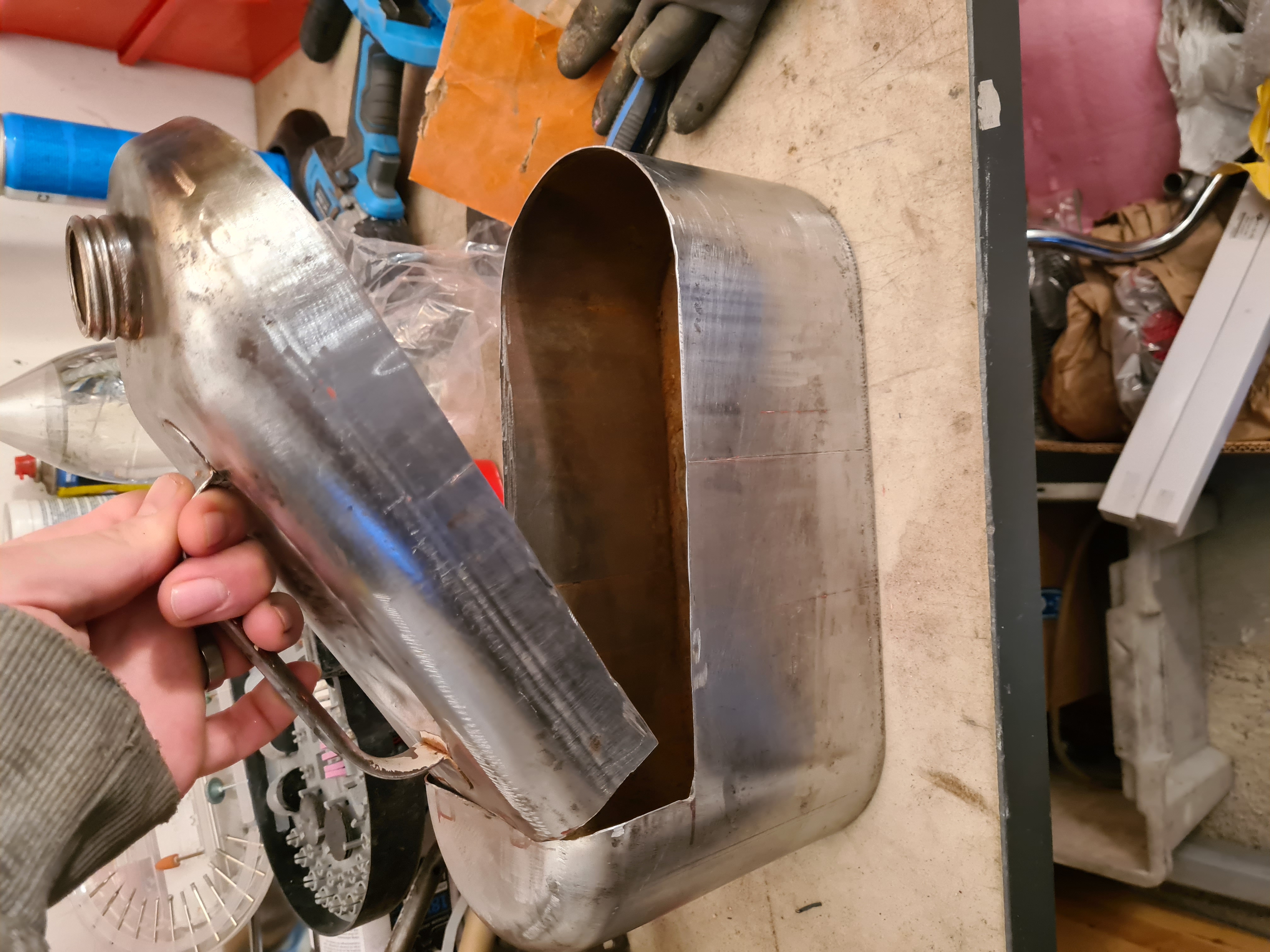 En hel del tid gick till att försöka tillverka nya svingkåpor. Fixade verktyg till hydraulpress på jobbet, hitta rätt material och metod. Har inga klara än men har troligtvis klurat ut hur jag ska gå till väga iaf efter flera misslyckade försök.