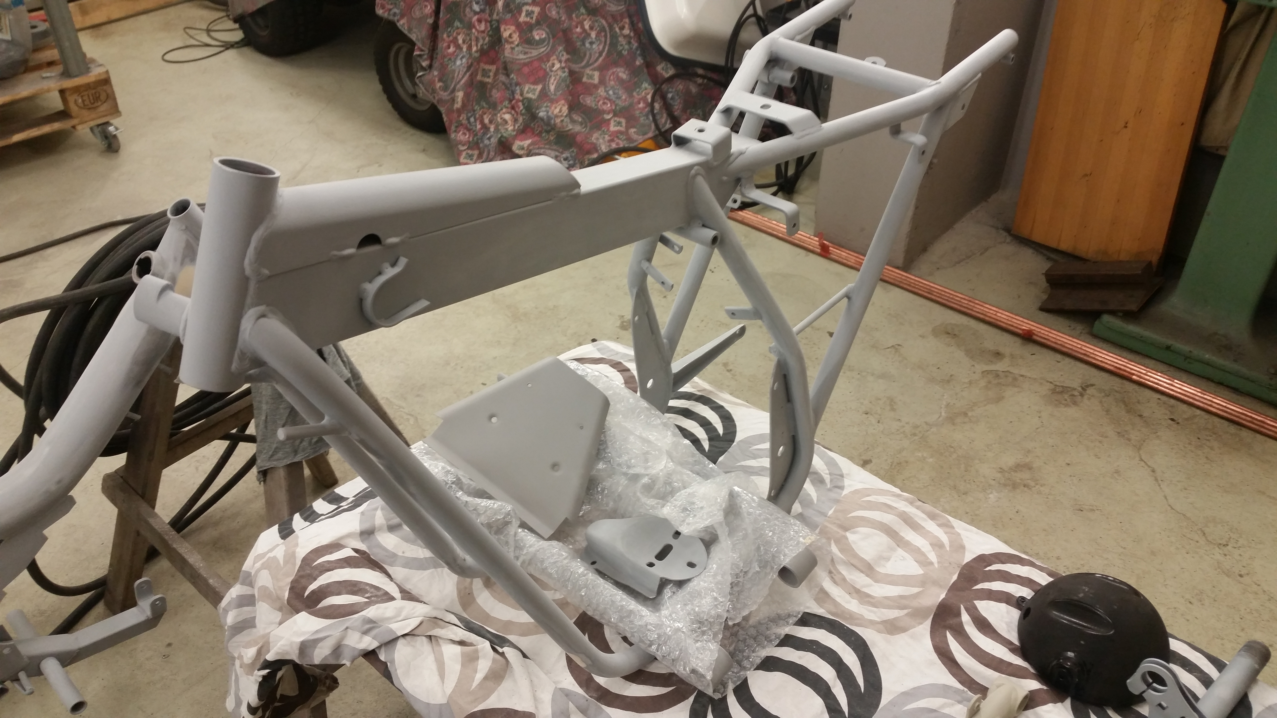 Kom inte längre än att ramen blev renslipad från gamla svetsnoppor, in lyft i lackskåpet, avblåst och silkonentferner vaskad..