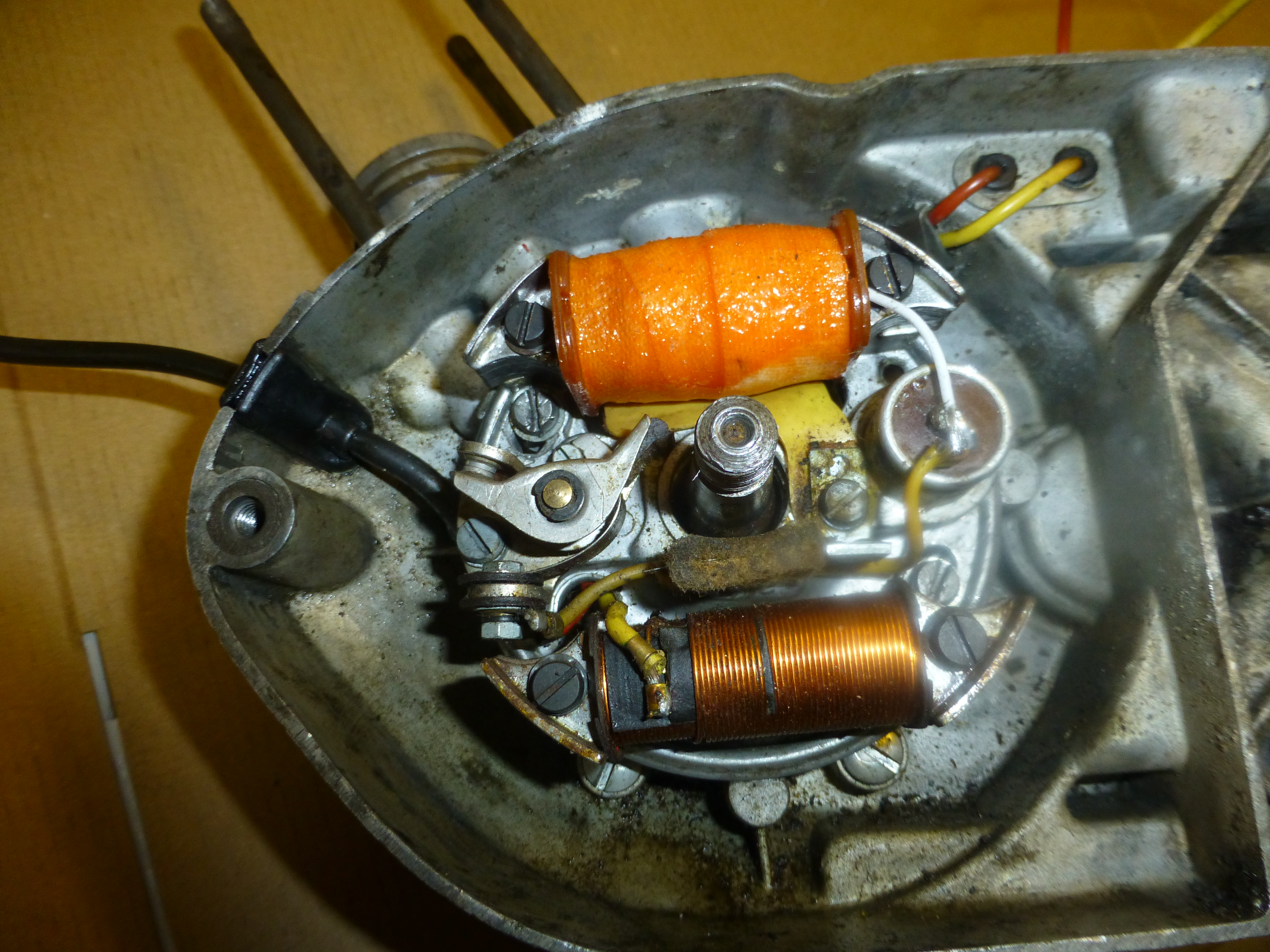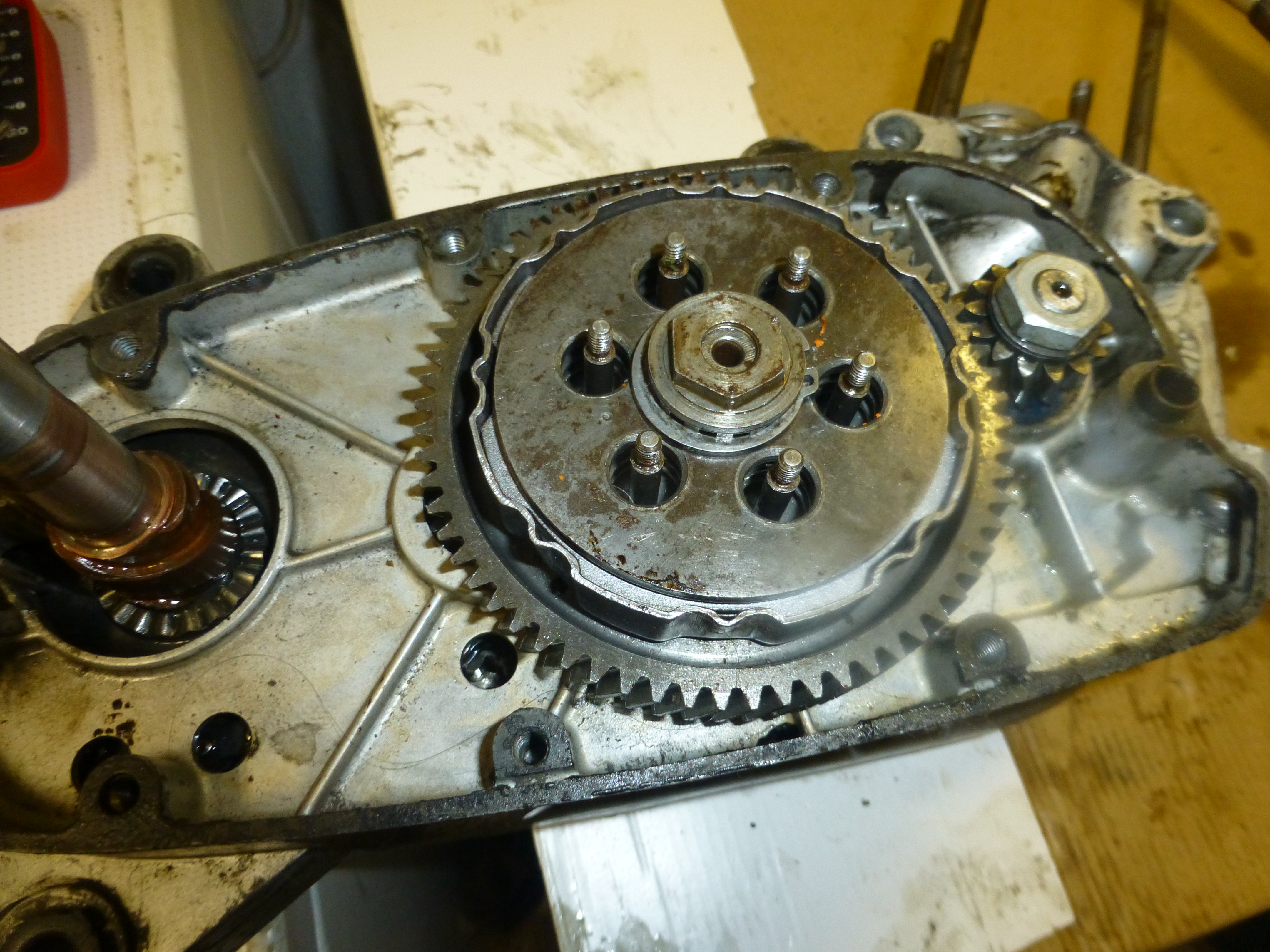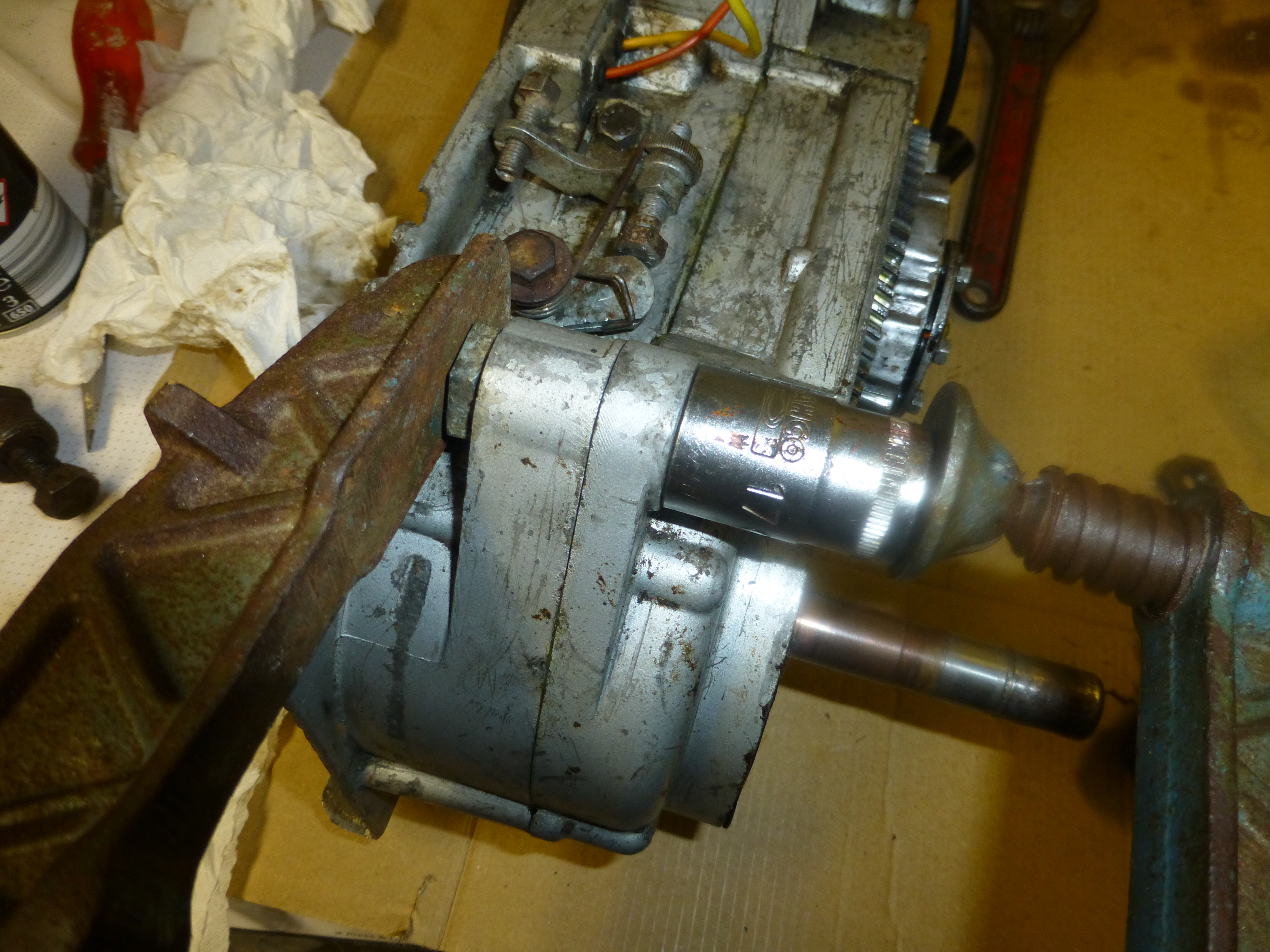 Jag tar alltid massa bilder när jag river isär, bra om man blir tveksam när grejorna skall ihop igen...Plockade bort svänghjul och tändplatta för att komma åt skruvarna som ligger dolda bakom, slagskruvmejsel tycker jag är bra att ha när skruvarna sitter som berget som här. Ger bra grepp och slinter inte även om man bara slår en gång per skruv för att mjuka upp den lite.