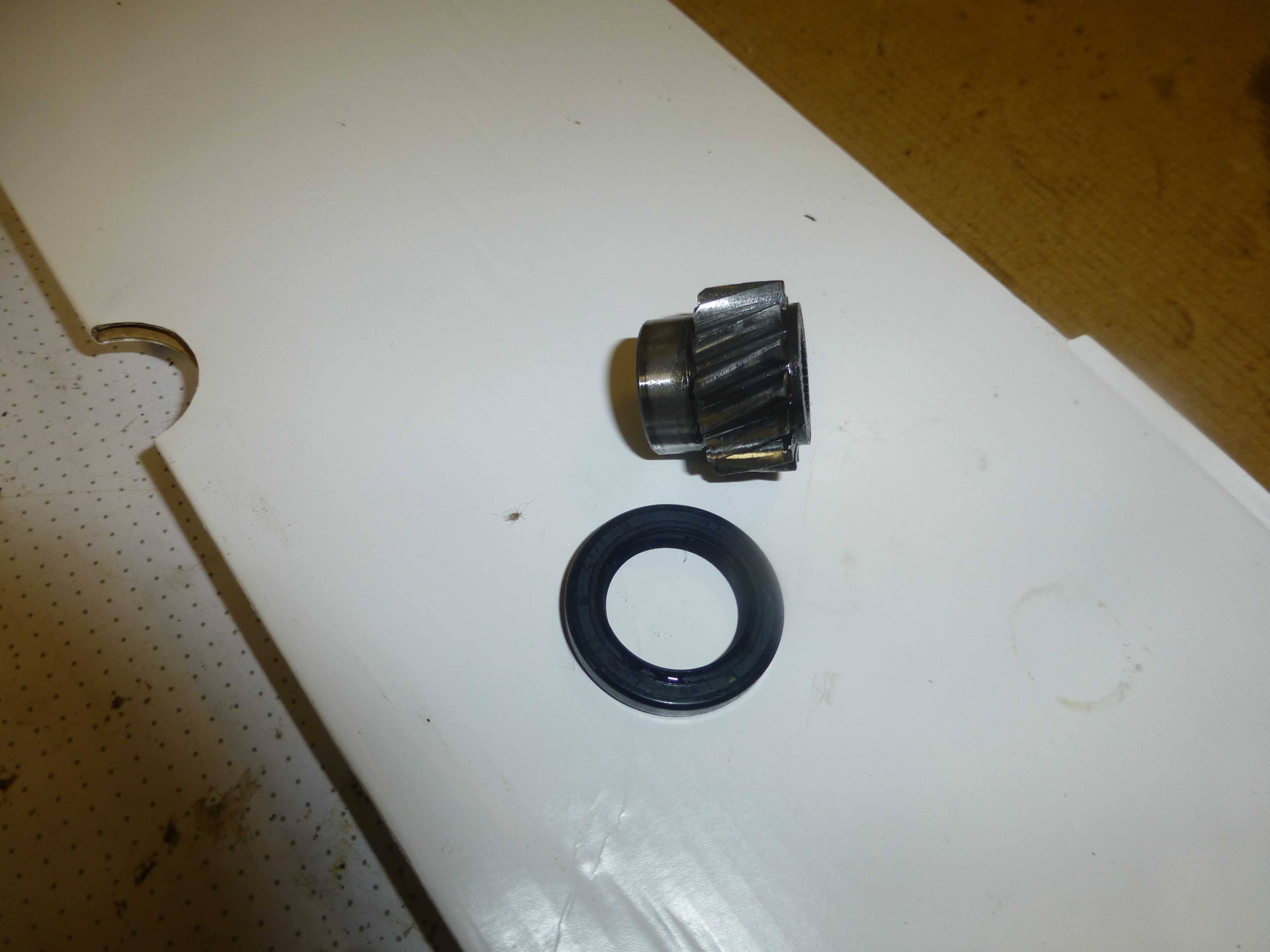Jag var inte riktigt beredd på att behöva klyva motorn för att byta packboxen på den sidan, på den nyare Victoria MS 50 behövs ju inte det... Men bara att börja. Problem direkt med låsningen som håller spärrhistorien för bak bromsen på plats, motorn är ju söndermosad och ändarna på låsningen var så vassa att det inte gick att få grepp med låstång så jag kunde spänna ut den ur spåret. Tog en halvtimmes funderande och provande innan jag löste det men låsringen gick i två delar på kuppen. Men den kunde jag ändå inte sätta tillbaka.