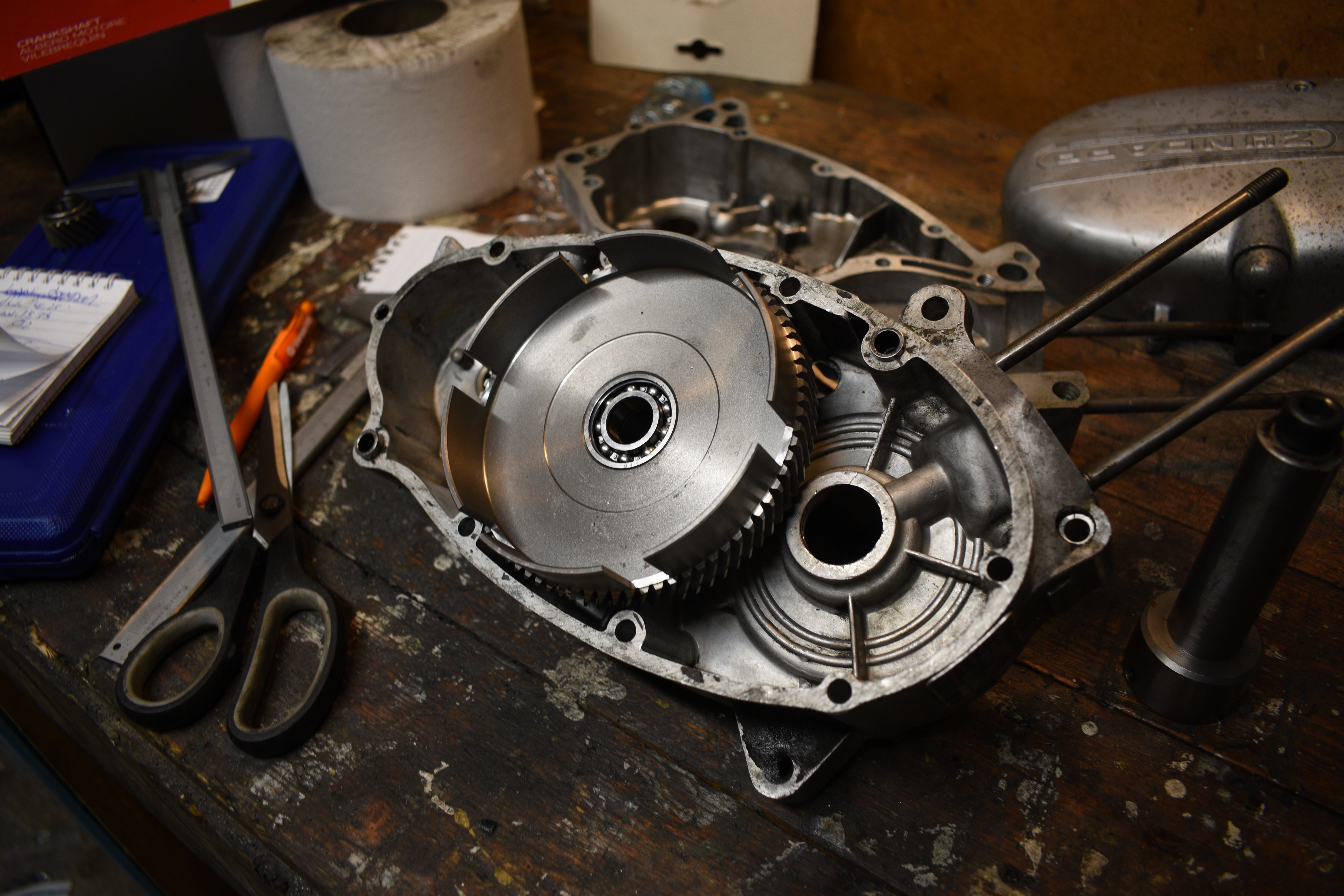 Sedan lade jag ihop blockhalvorna och monterade nya förstärkta kopplingsfjädrar samt Newfren lameller.