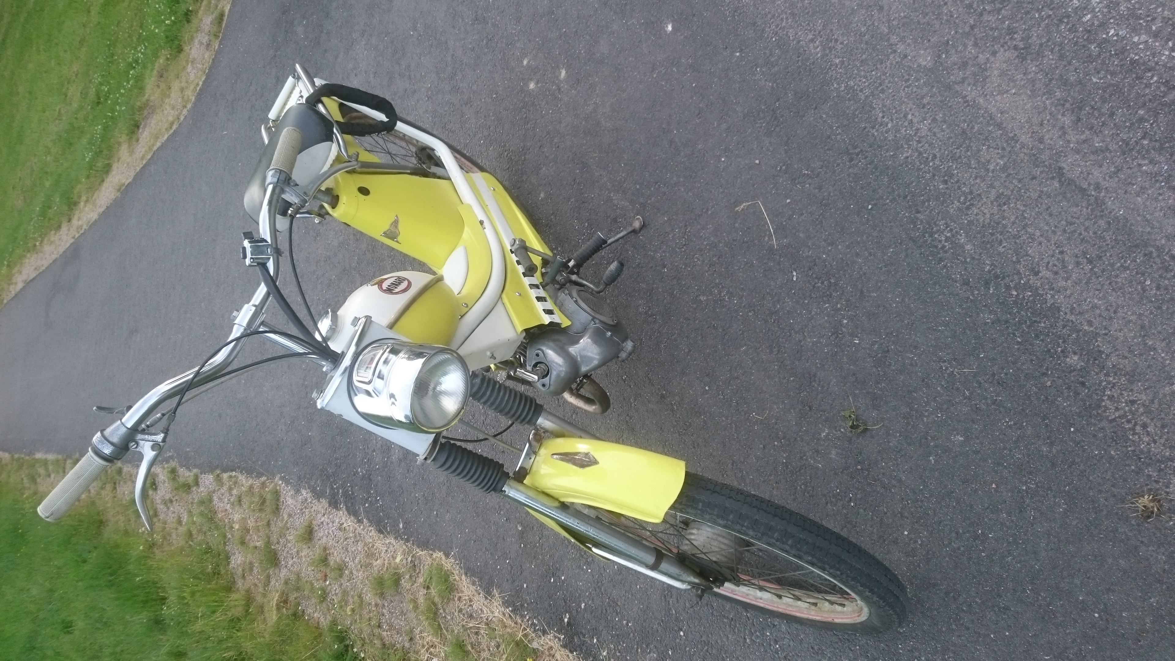 Den kan ha den buckligaste tanken jag sett. Men den är matching numbers i alla fall. Motorn funkar och moppen är körd tills den ställdes undan för 3 år sen.