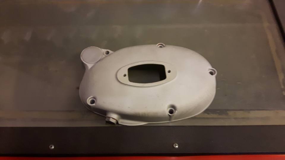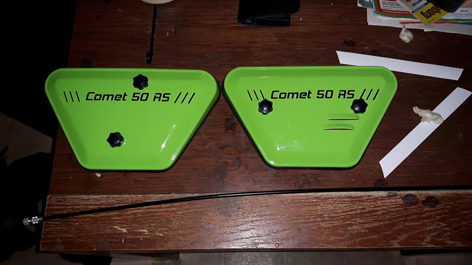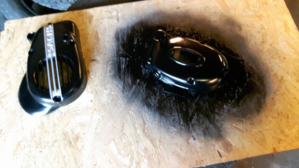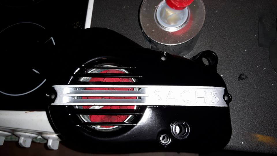 Ikväll efter lång arbetsdag ordagrant vart Varberg Vetlanda Jönköping Borås och hem å då ska man mellan sträckorna laga lite maskiner också.. En rätt sliten karl när man väl kom hem.. Men en lite moppejobb fick de bli i alla fall.. Fått monterat dekaler på sidokåpor med de nya listerna och kåpmuttrar gjorde det sig rätt bra om man är som jag både jävig och partisk... Sen skulle motorn varit monterad!! Men där sket det sig visade sig att färgen till transmissionskåpan spruckigt!! Jaja börjar bli van med förseningar i motor monteringen nu! Senast var det en kåpa som saknade en gänga till lillkåpan... Nu får det bli en tripp via bläster och en bättre anpassad grundfärg. Gör om gör rätt det är takten i en vals..