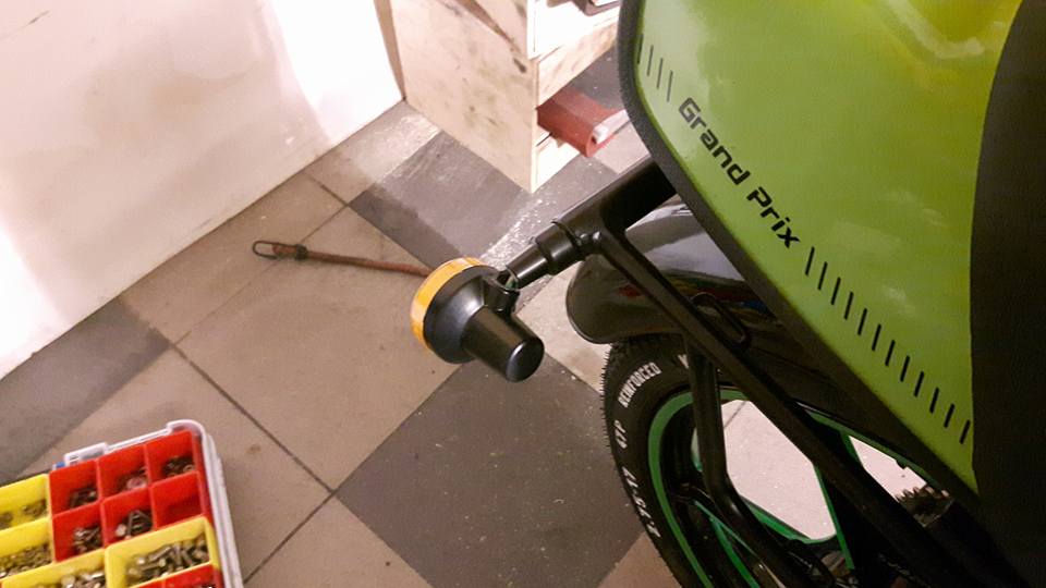 Ingen ide sura ner sig lika bra ta tag i något annat så fick bli montering av blinkersarrangemang/väskhållare samt baklampan.. Rätt nöjd men bestämt att det får bli ett litet KTM märke nederst på bakskärmen och en nyknåpad under baklampan lite grön text som passar in mot den gröna tätlisten bakom baklampan och lättar upp lite i det svarta. Räknar och tror det kommer bli riktigt braigt men återstår se..