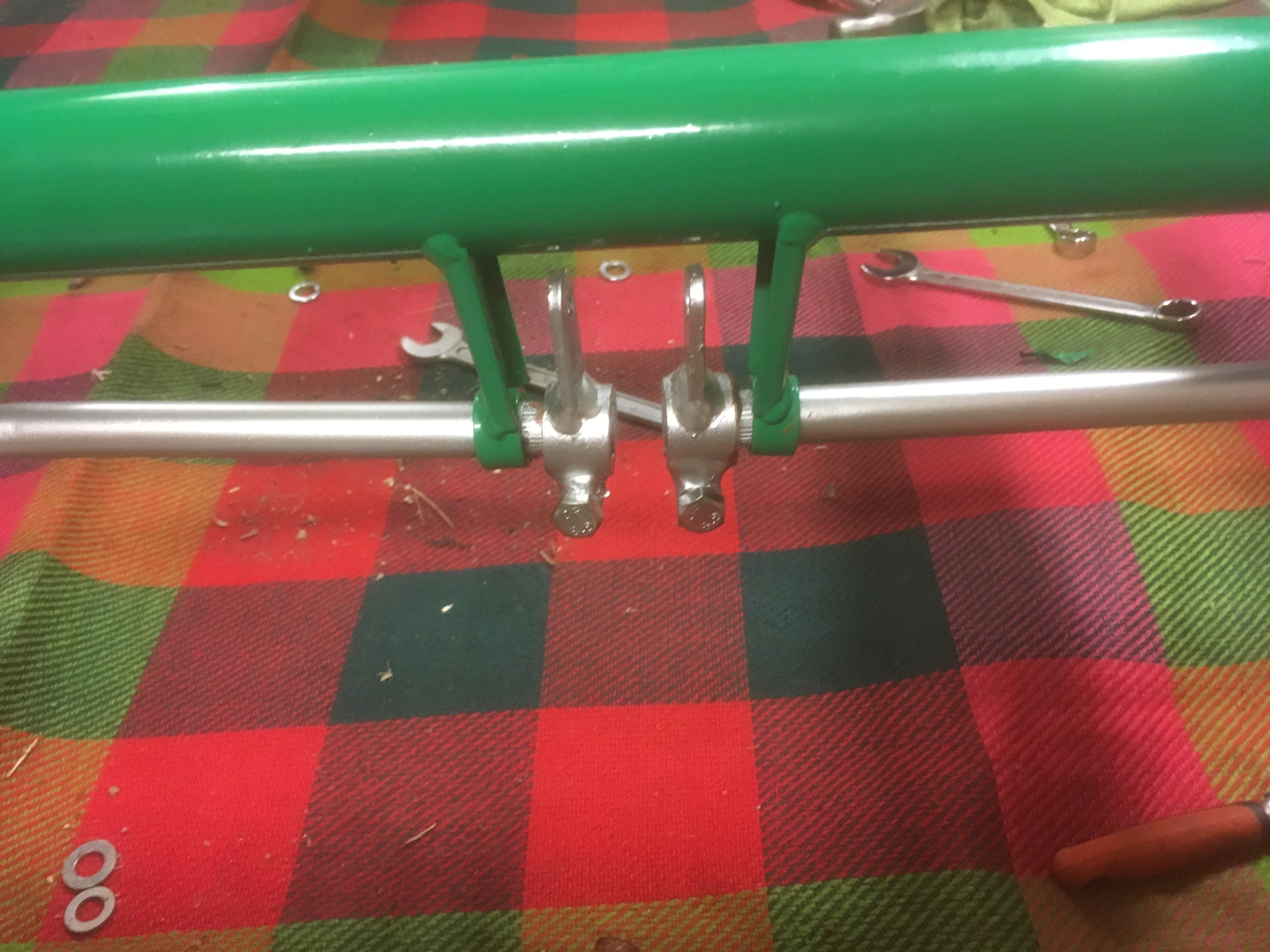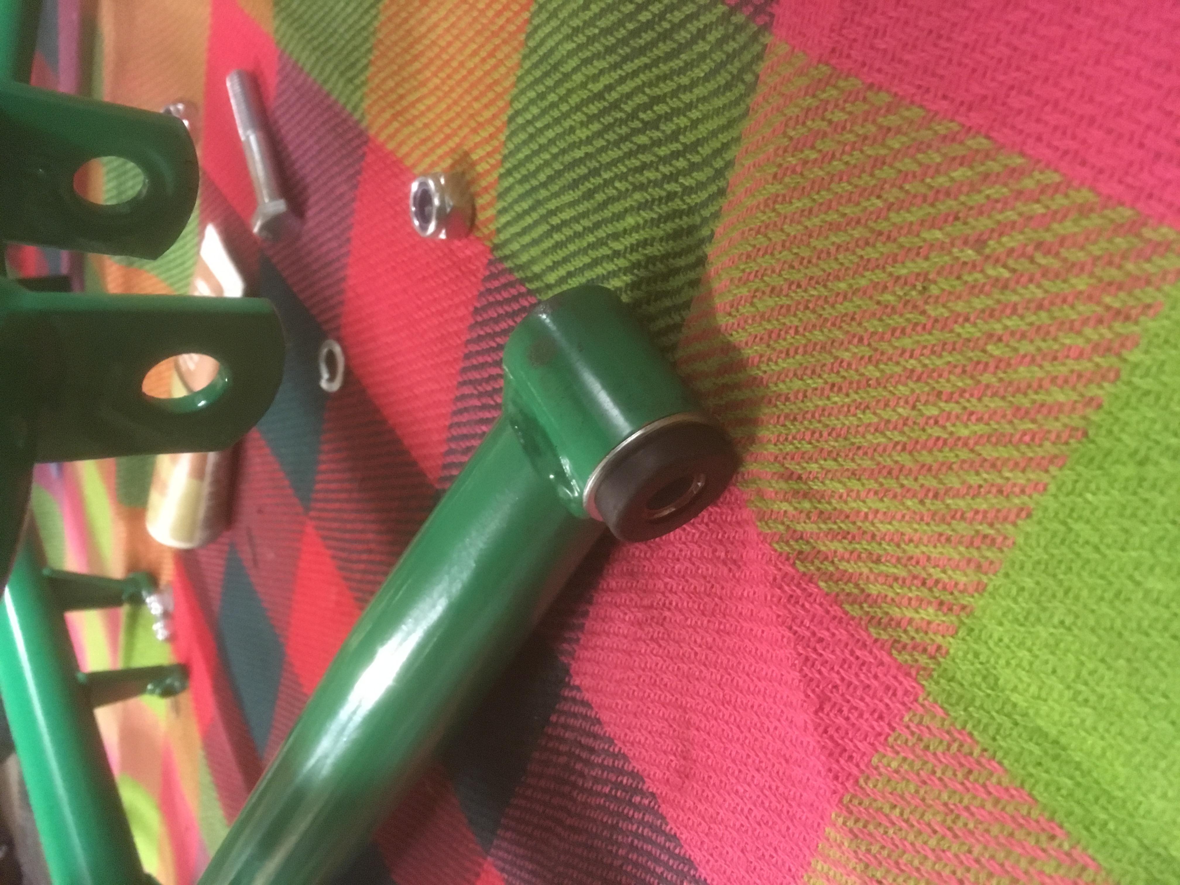Frambromsarna med tillhörande stag och leder inklusive nya bussningar är monterat.