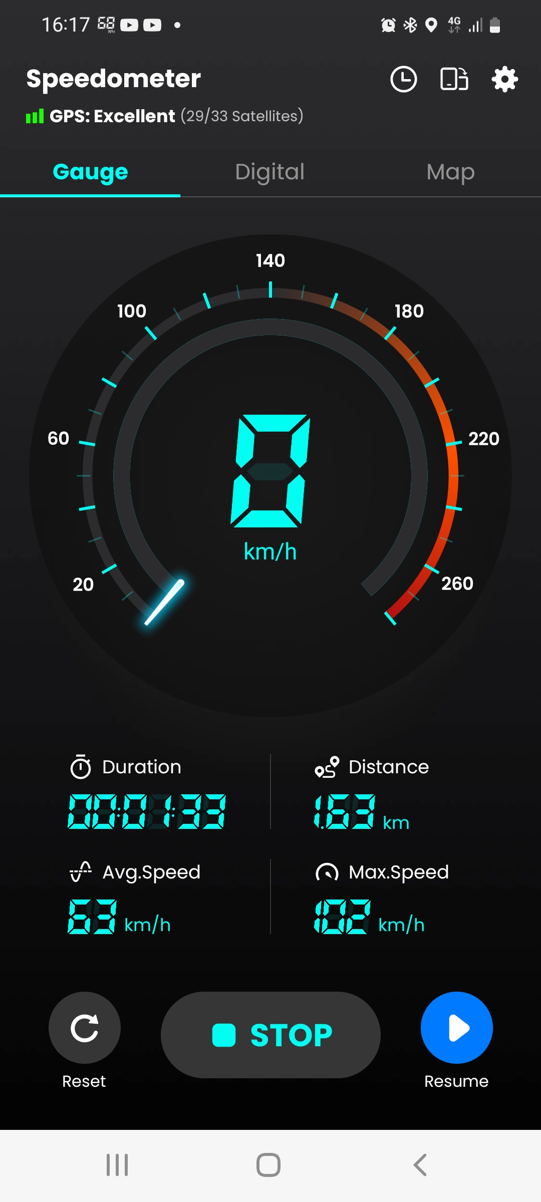 Det är ju lite besvärligt att använda gps och kolla på den i dessa farter, dock finns det en perfekt låda i tanken där man kan lägga tele och den går långt över hundra nu 110 +