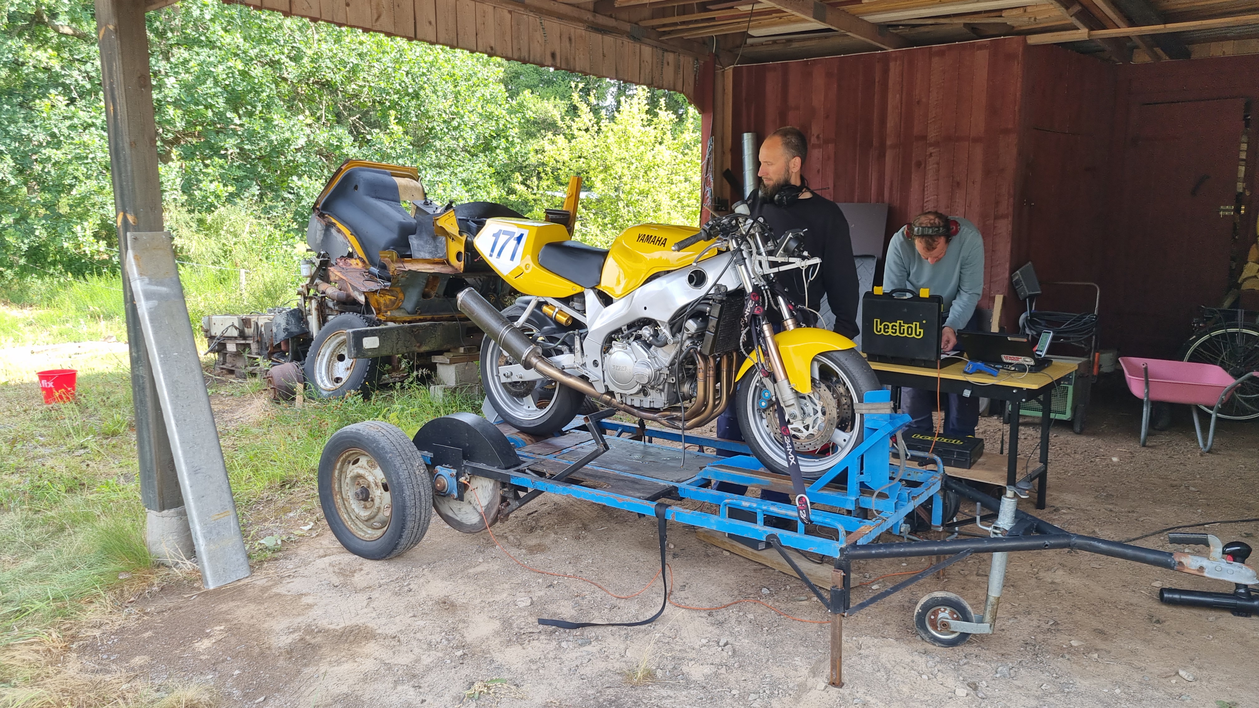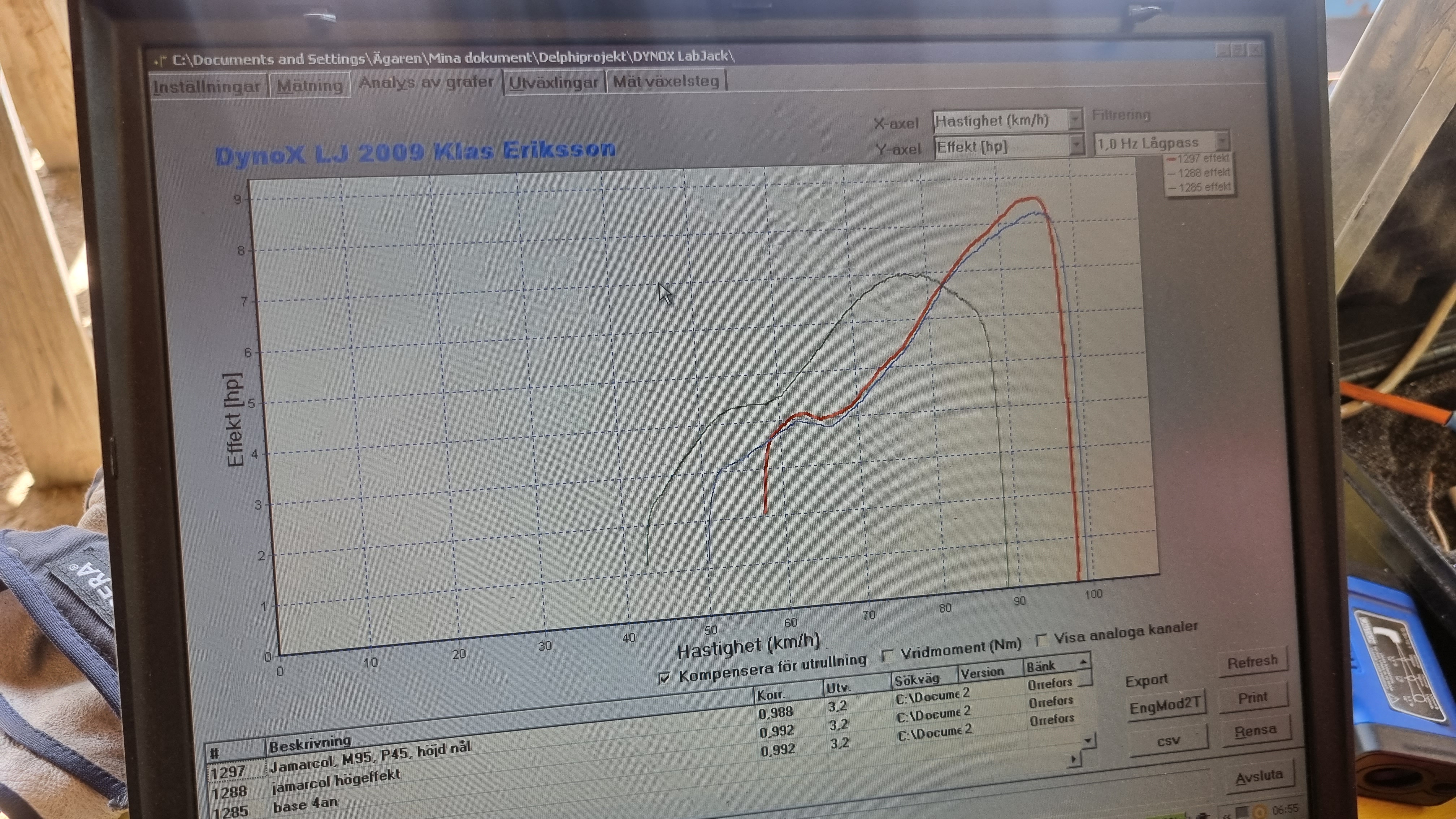 Rexen på dyno 1: med typ original ljudämp samt 2:a draget med Jamacol rör, fick bra och fint resultat, samt 100% ärliga hästar på bakhjulet.