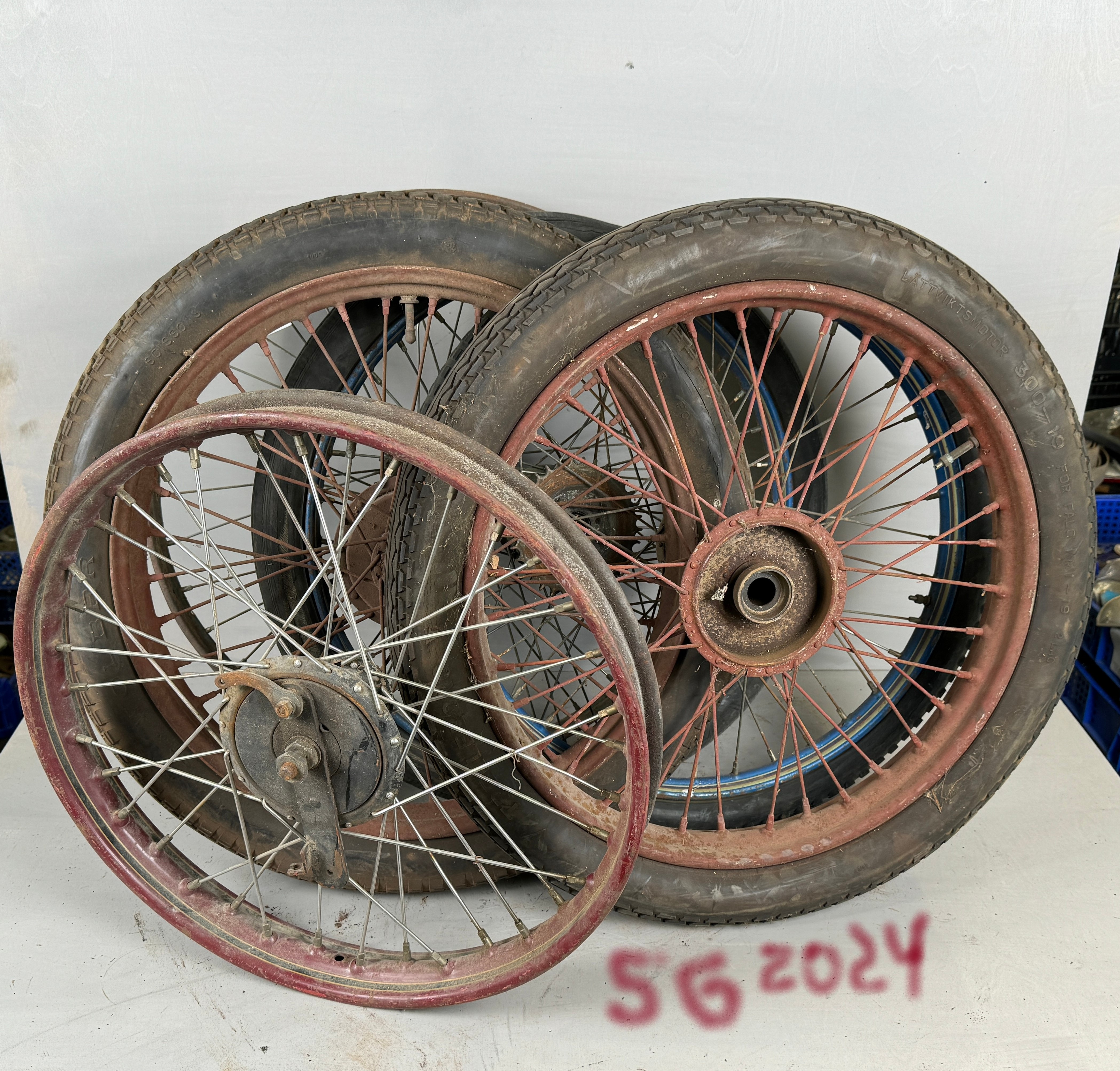 Man letar ju saker konstant, Så dyker det upp 5 Husqvarna hjul för 500kr, Äldsta son har Svartqvarna lik och yngre dyngracer bygge av monarkram med värdo hjul. Men Svartqvarna bakhjulet 21" tar pappa samt 1930tal 19" hjul.
