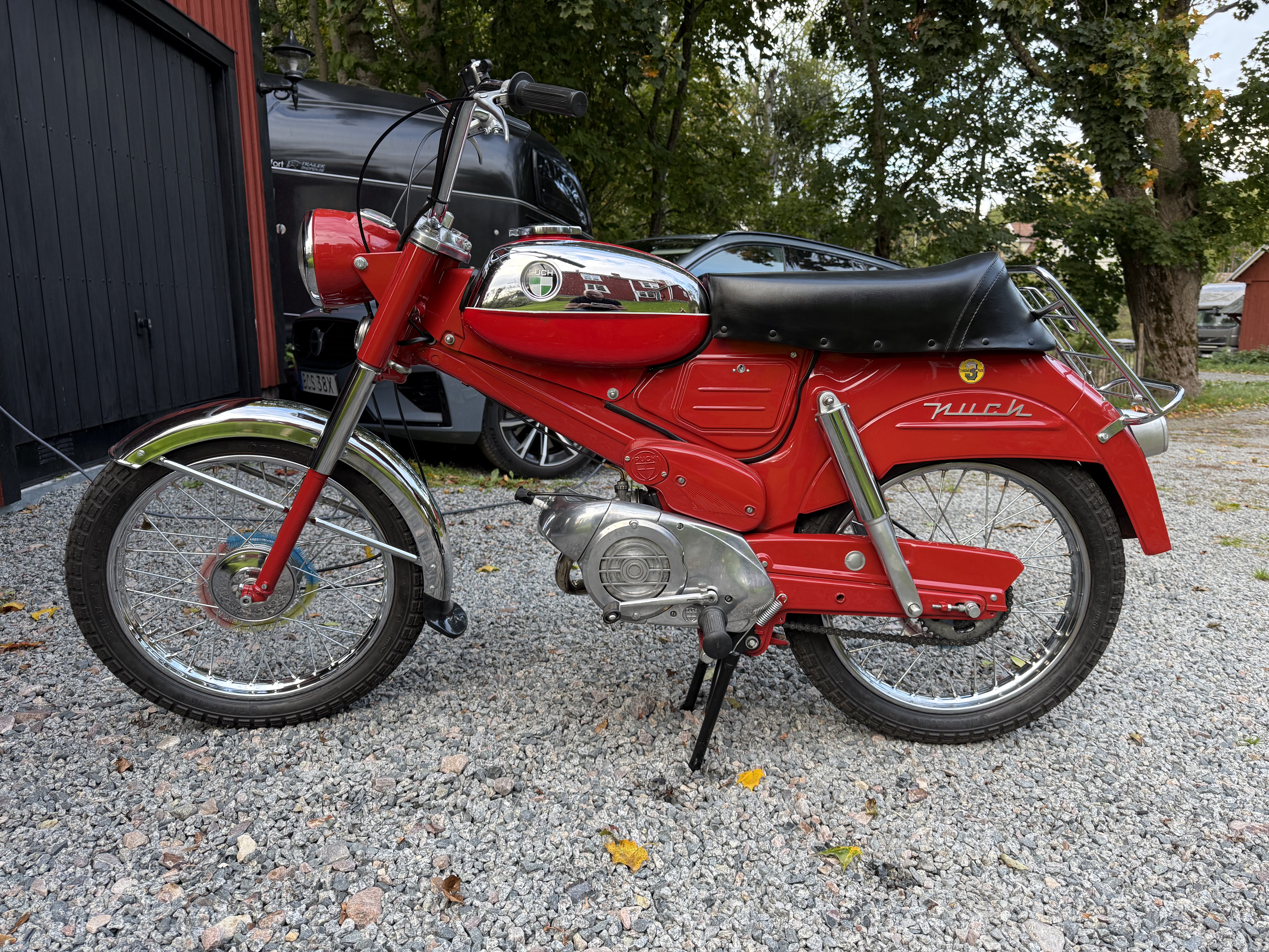Som grabb var jag aldrig någon vän av Puch Dakota och heller inte MCB 50SS, troligen p.g.a. plåtramen och fläktkylning. Numera tycker jag äldre Dakota med fender skirts är ursnygga och man undrar hur många som fick dem bortkapade när det begav sig. Nu är jag en Saschsman med radarn riktad lite mot 50SS, men den där var bra köpt. Grattis och två tummar upp!