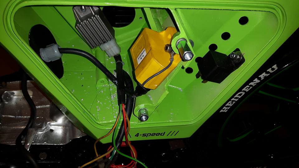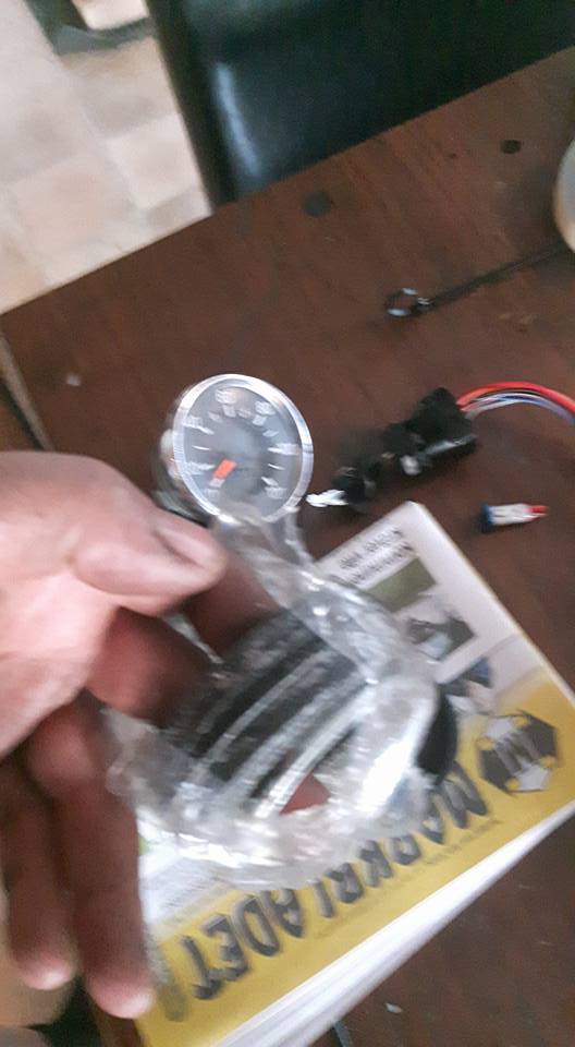 Konstaterade snabbt att varvräknare är för töntar för lär inte komma plats någon så tur det bara är täcklock i halva panelen!! Men efter en stund börjar det sakteliga arta sig som tur är. Dito andra sidan... Då jag ändå har ett batteri om än litet 0,8A lika bra fixa parkeringsljus inga starka Watt diodlyse bak och positionslampa fram. Så bör i alla fall klara en kissepaus på mörk väg hyfsat trafiksäkert om nu inte färgvalet ger mig viss synlighet ändå.. Passade även på att få monterat ett 12v signalhorn ett måste om man vill låååångtuta. Misstänker att jag får byta signallampor i panelen till 12v också lyser rätt skarpt nu kommer nog inte hålla nämnvärt länge men det får bli en annan dag!!