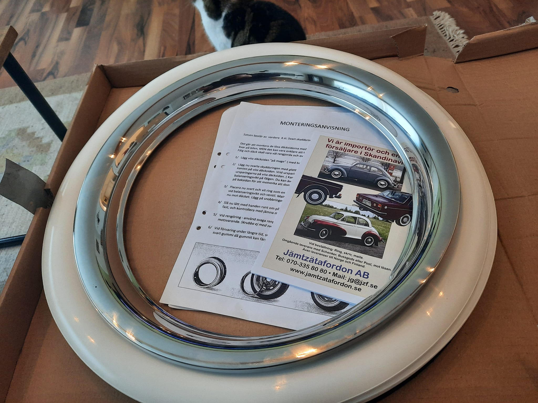 Kom en omgång vita däcksidor med tillhörande kromringar med posten...