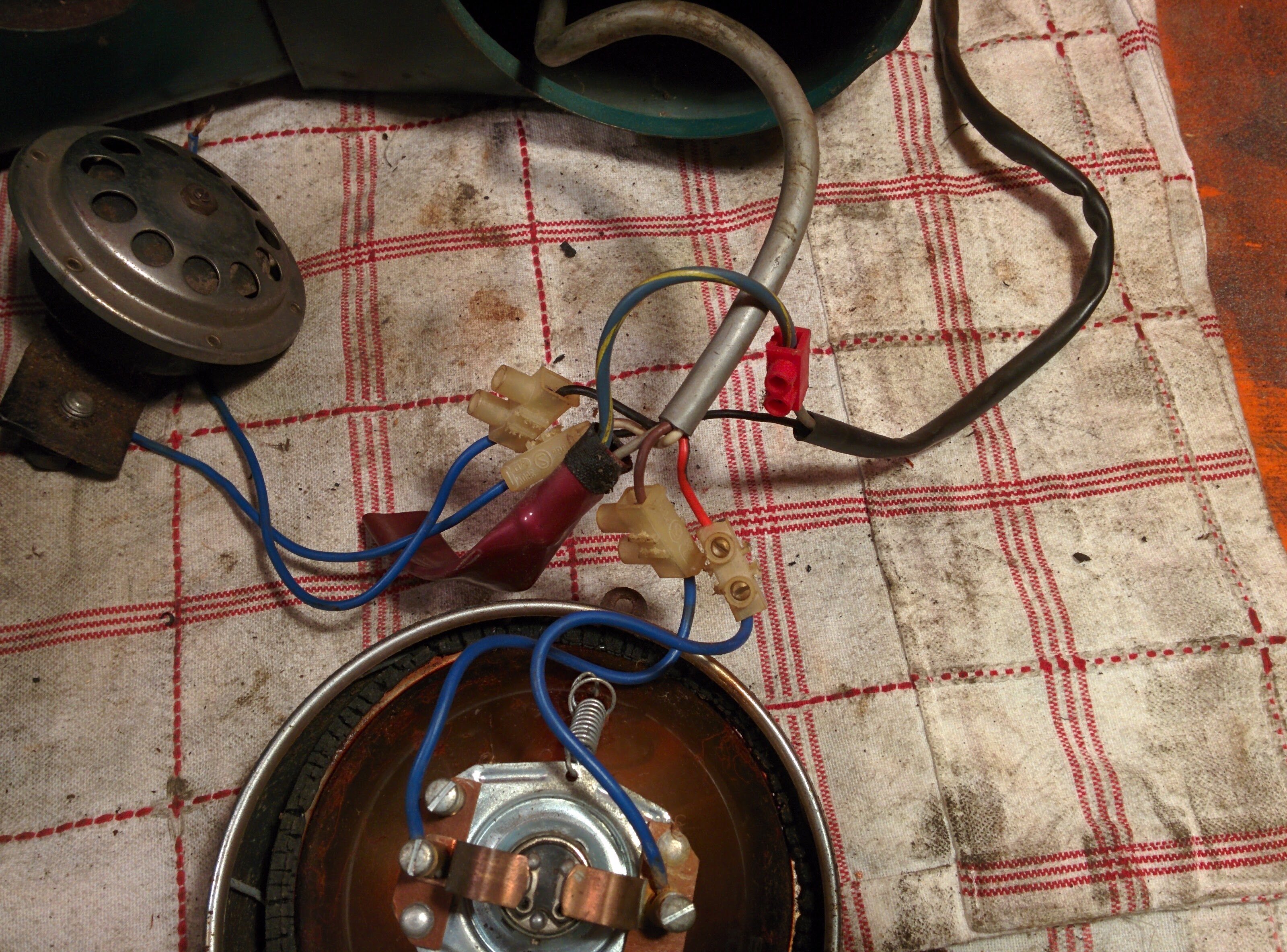 Jag har en bild på hur elkopplingen ska se ut inne i lykthuset på en monarscoot -57 och om jag hittar bilden lägger jag in den framåt kvällen.