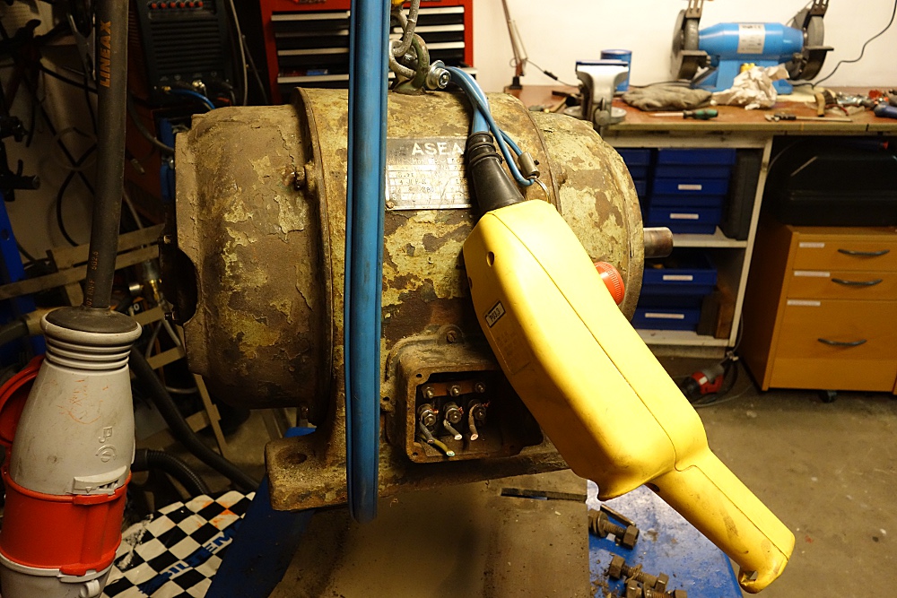 Jag lyfte fram min lille motor i rummet ikväll, la en liten flat stropp om lyfte som man lyfter en resväska och man kan säja det var precis vad jag orkade utan det gjorde ont. Men har man otur kan det göra ont efteråt i axel eller rygg. Nu ska jag bara rigga upp en fjädervåg och göra lyftet med en vanlig lastspännare. Motorn är liten och man tror inte den väger så mycket som den gör, den ser så liten och nätt ut du ska få se...