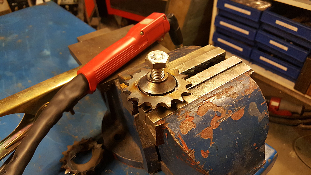 Aluminium är mycket svårare genom att det inte ger någon synlig glöd-puddle och rämnar snabbt när det väl gör det. Den här gången använde jag glasögon i hjälmen och för första gången kunde jag se ordentligt hur det fortlöpte. Att se bra och rigga upp så att man är stadig på handen är kanske det som betyder mest. Sedan är det förstås mycket enklare att svetsa ihop två drevdelar med bra passning som de här än tunnplåt som kanske inte ens passar ihop bra. Det är därför jag inte bygger avgasystem från scratch. Jag vet hur mycket förarbete det krävs med passningar för att det ska bli snyggt och bra. Vill man bli duktig på att TIGa tunnplåt kanske man ska börja med grövre material för att se och förstå vilka fallgropar som finns och sedan gå vidare med svårare svetsningar i tunnplåt.