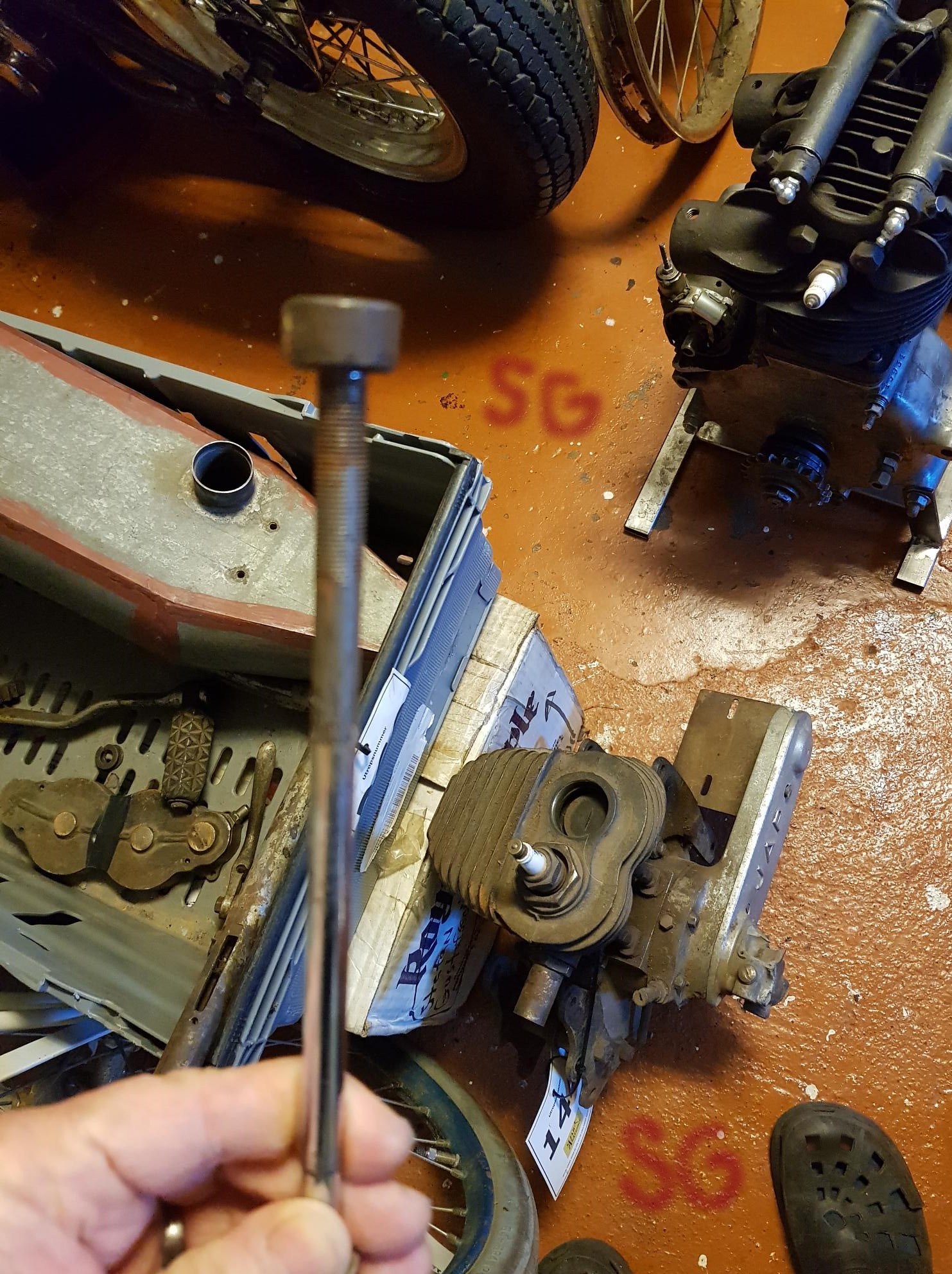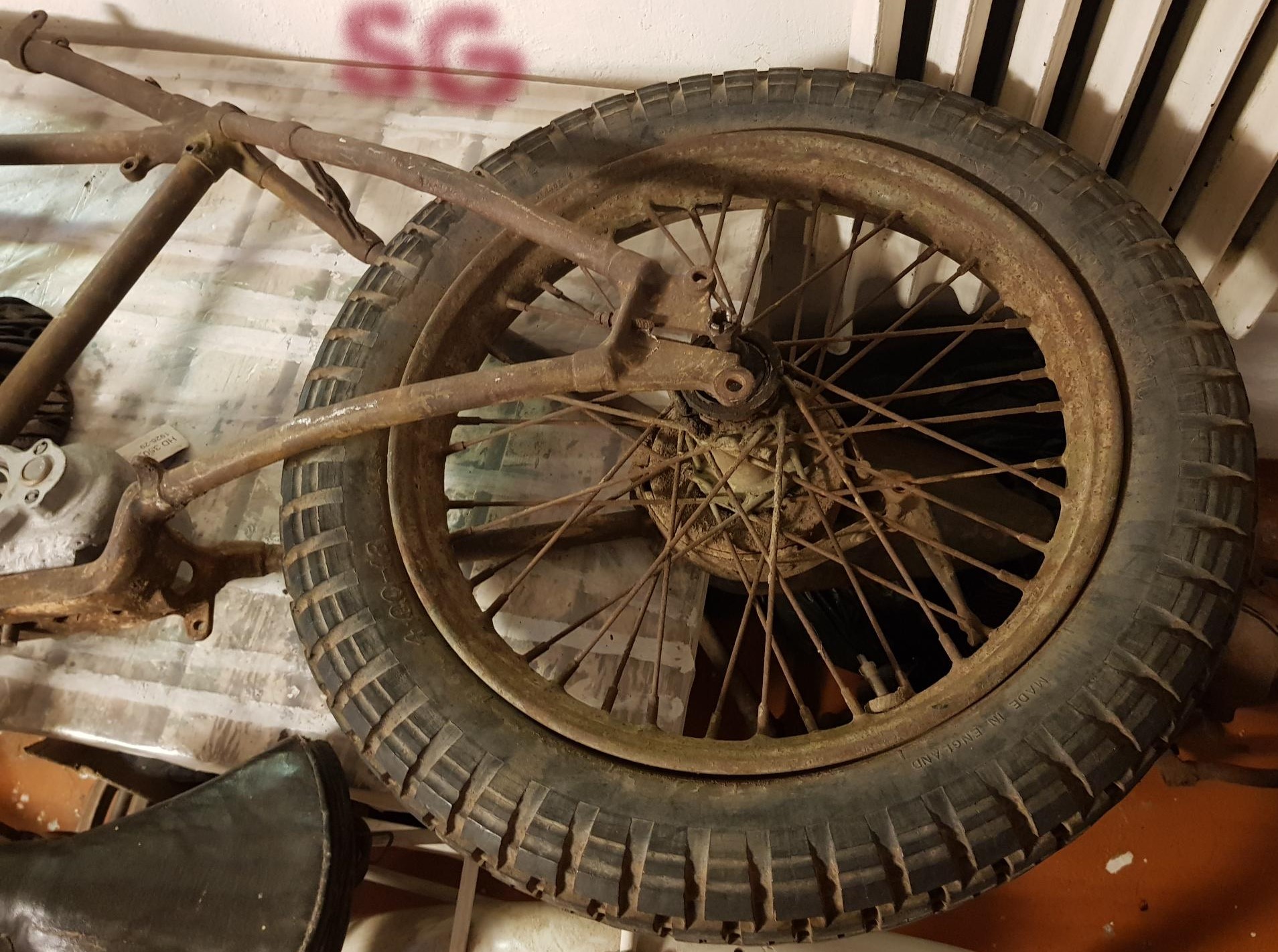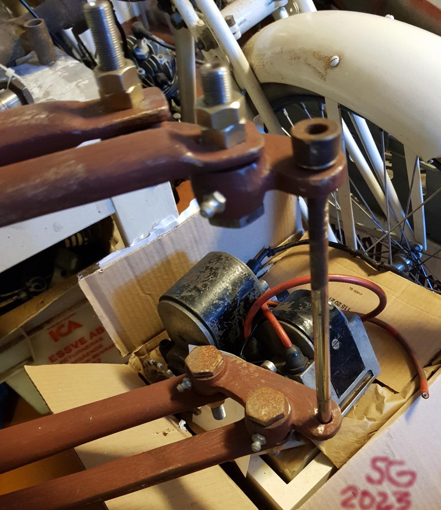 Efter svurit ett tag börjar jag jämföra på bilder osv, är ju rätt hjul, va fan. Börjar att se om det är krökt på ram osv, nä inte det kan vara rost och skit inte värst, ska ju löpa fritt. Har ett Harley dl hjul jag ska prova med, när jag väl hittar på det i samling av delar i garaget.