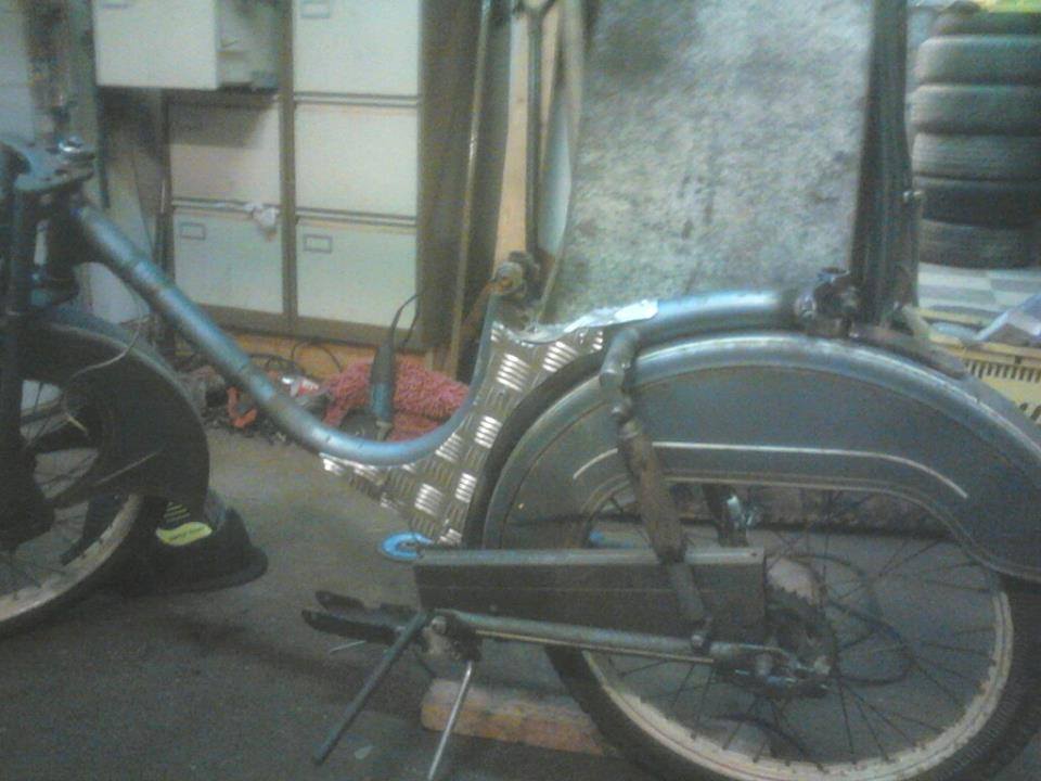 Även mopeden fick sig en uppiffning här påbörjas montering..