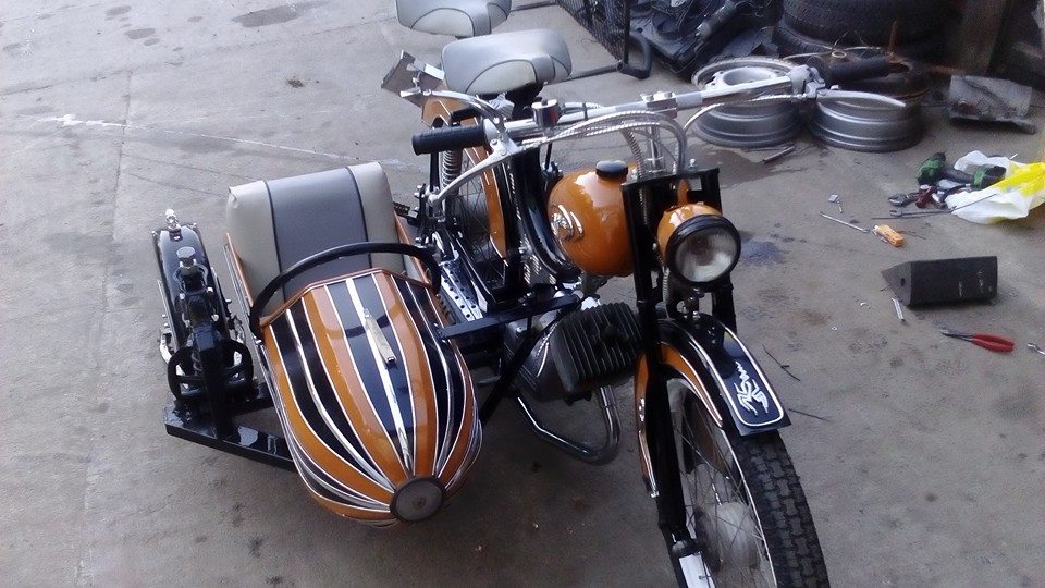 Annorlunda bygge, blev väldigt bra! Köra med sidovagn är inte helt enkelt redan med en stor MC. Så jag misstänker att det är ännu trixigare på en moped...