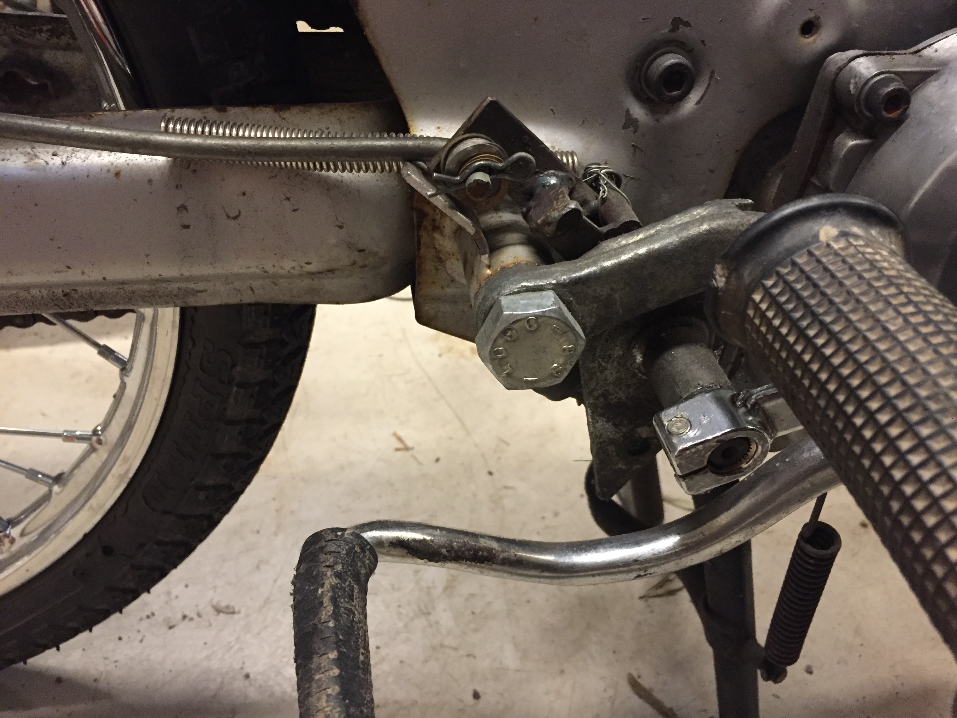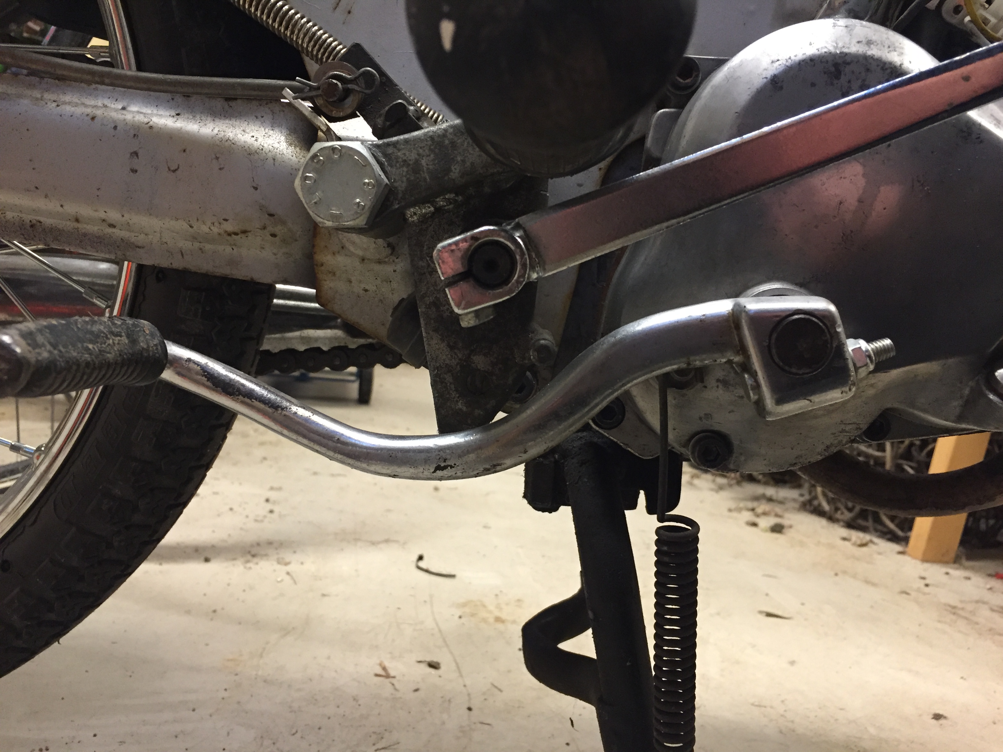 Håller på och försöker få ordning på min Puch Maxi och håller just nu på att återställa den till original setupen vad gäller bakbromsen. Tidigare ägare ser ut att jag gjort en riktig speciallösning som jag gärna vill ersätta med originaldelar. Problemet är dock att jag inte riktigt vet hur det ser ut på en original Maxi med kickstart. Bifogar lite bilder på hur min Maxi ser ut just nu med en hemmagjord lösning av tidigare ägare.