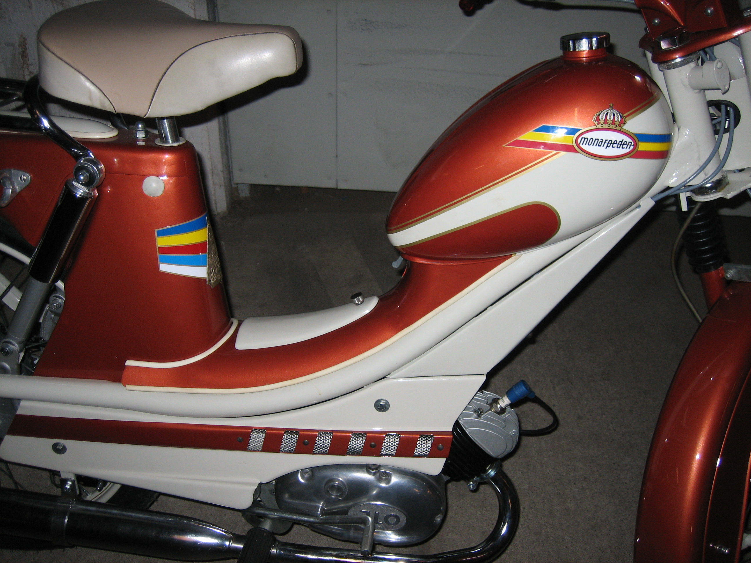 Håller på med de sista arbetsmomenten på en helrenoverad Monarped -62. Nu ska den nylackade tanken på plats, och snart är det dags för provstart.