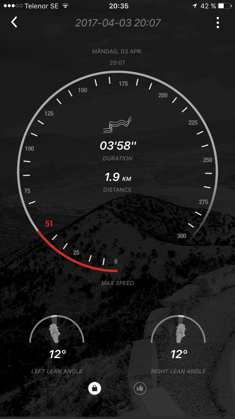 Kör du med stödhjul som begränsar nedlägget till 12 grader?Tias74 skrev:Blev en liten tur...51km/h på raksträcka. Några tips på vad man jan hitta på 60km/h hade varit gött.