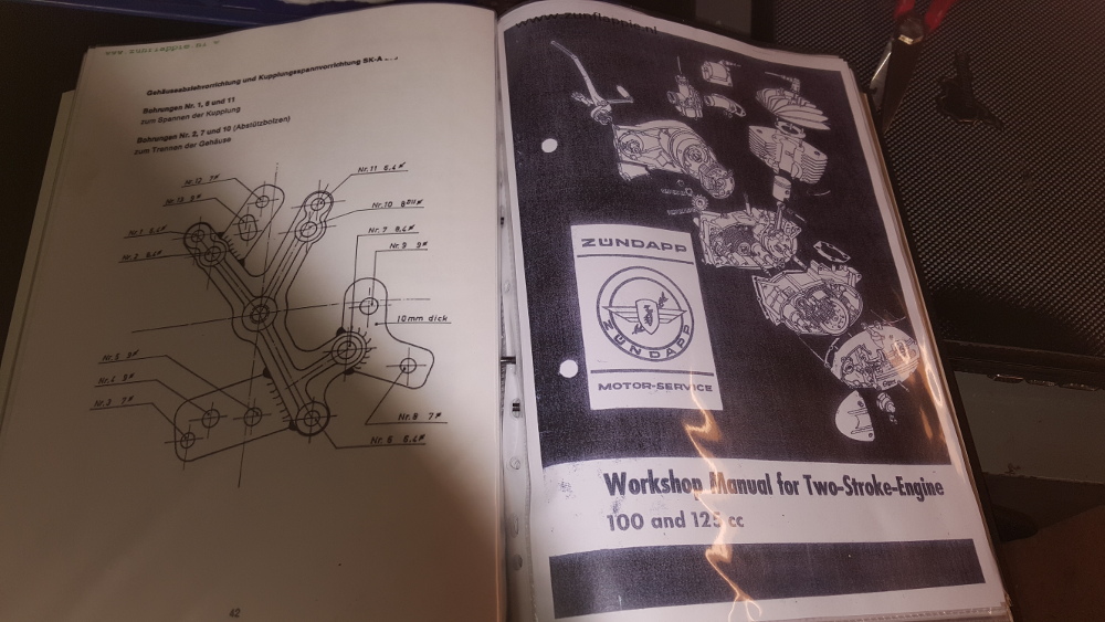 Som jag skrivit på annan plats har jag en motor i delar liggande sedan en 20-25 år. Kom med en i övrigt komplett Zundapp 125 med papper och allt, kostade 2000 den gången. Andra tider... Tyvärr var motorn i småbitar och det är alltid ett bekymmer när man inte själv skruvat isär den. Jag börjar titta över vad som finns nu och det kan bli problem. Första lådan: