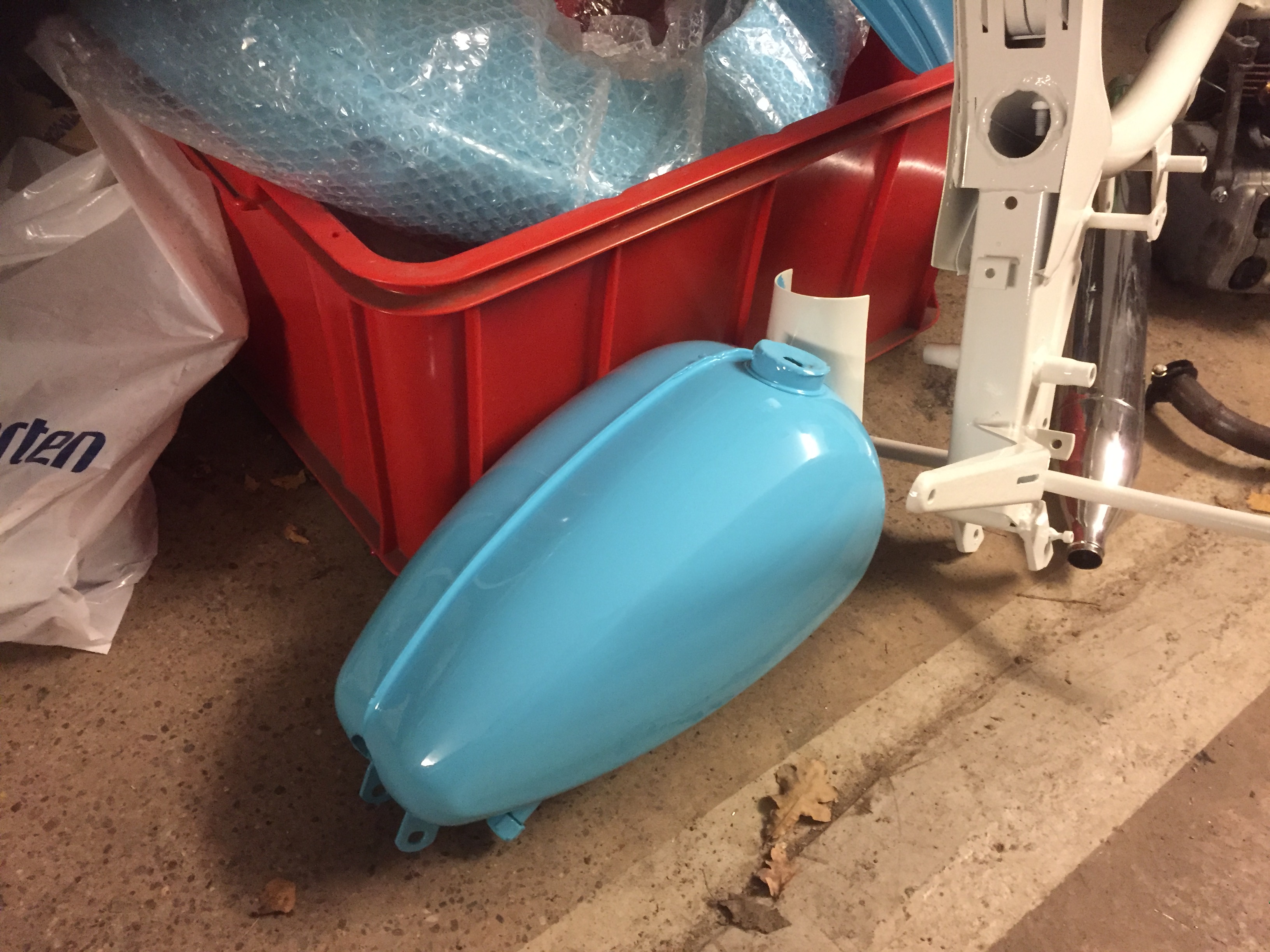 Nu efter en tids ointresse har äntligen flitenslampa lyst i garaget då mina nykromade delar kommit tillbaka från Polen.
