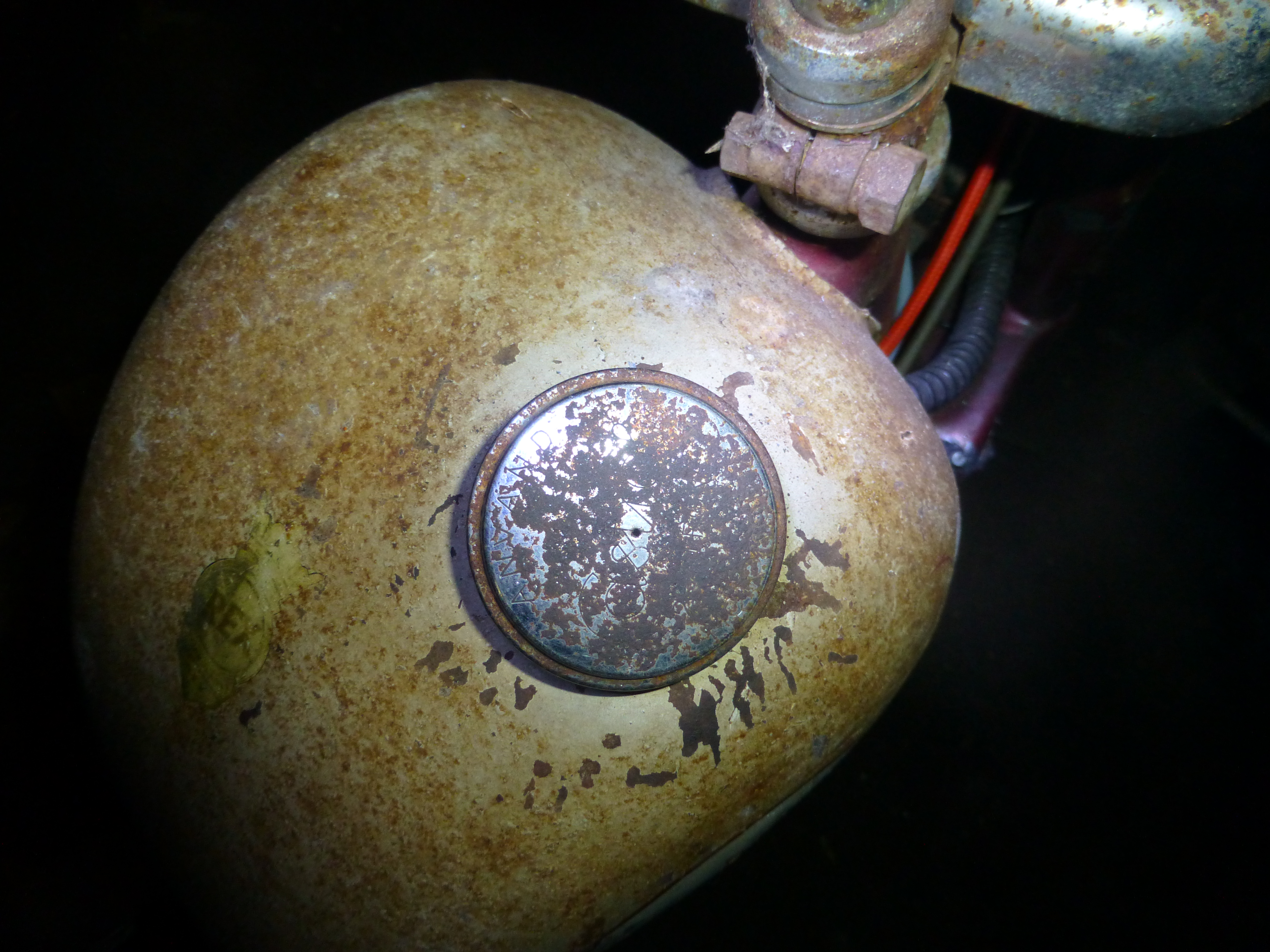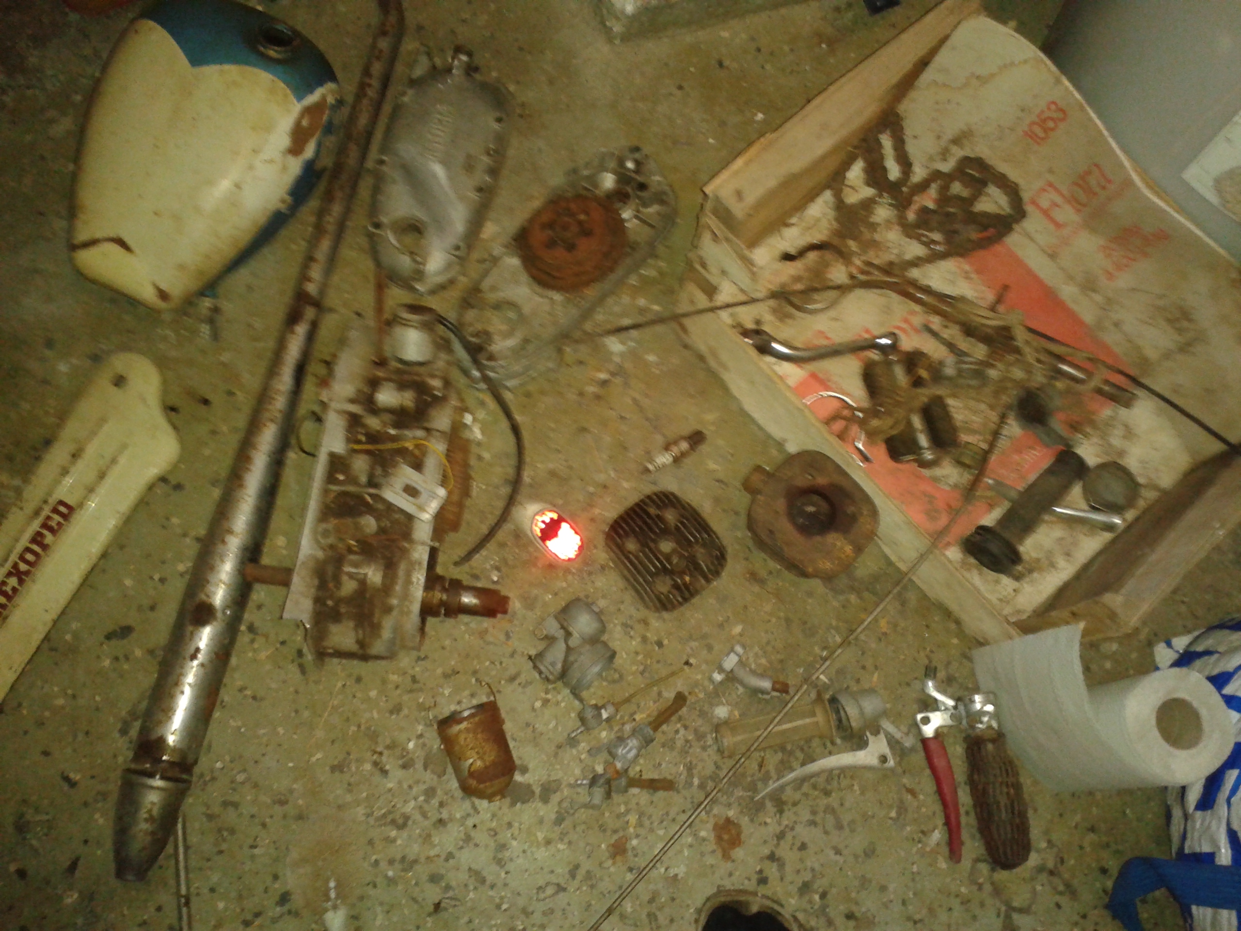 Vajrar, handtag, avgassystem, tank, svingkåpa, baklampa reservmotorer och mycket mer hittade vi vid sidan om, men mycket saknas än...