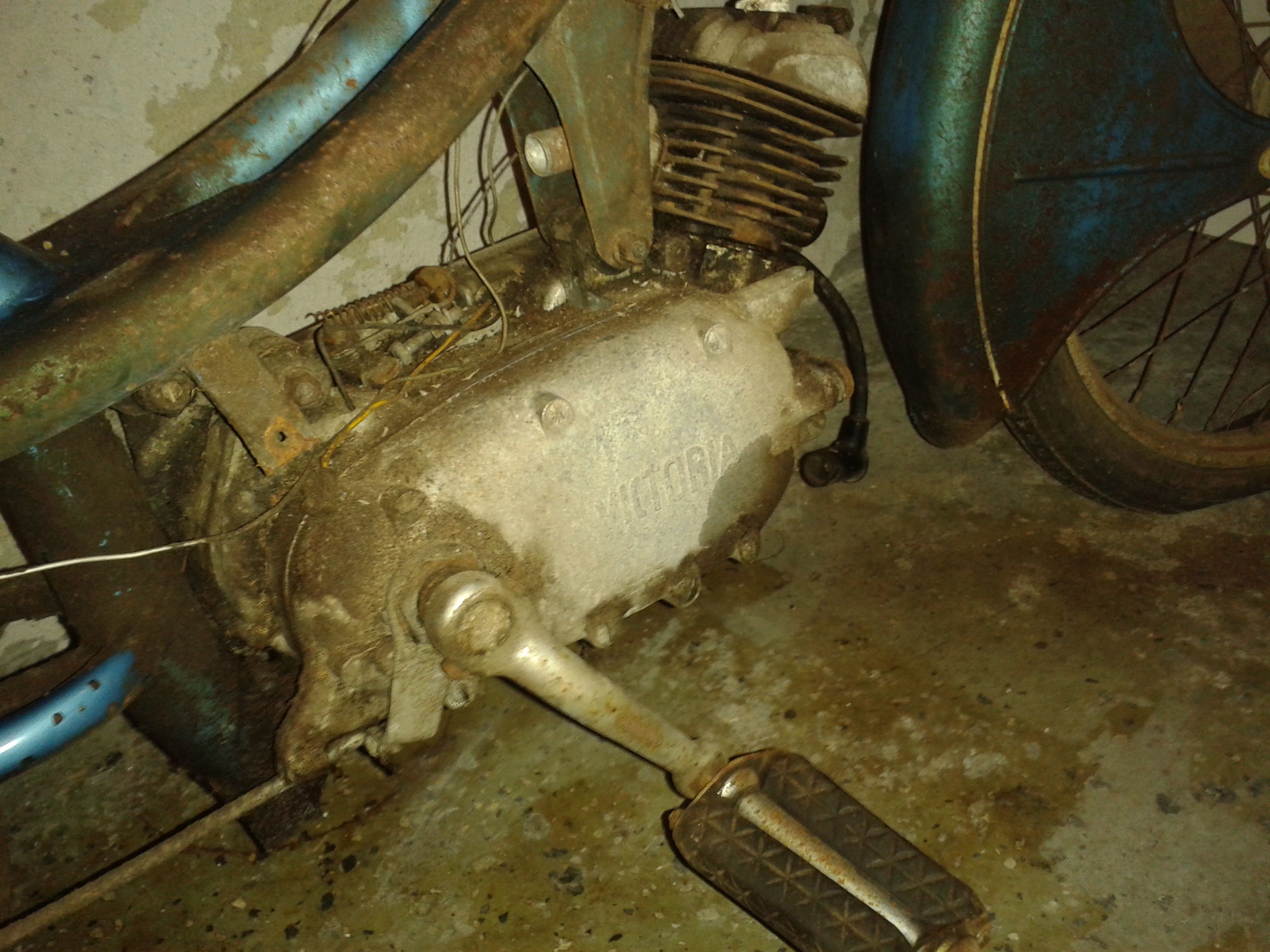 på kvällen lyfte vi ner moppen från logen och lastade den. I halmen låg en massa delar till Victoria, Puch, Husqvarna, Gilera mm. Så vi tog alla victoriadelar vi kunde finna i mörkret och åkte.