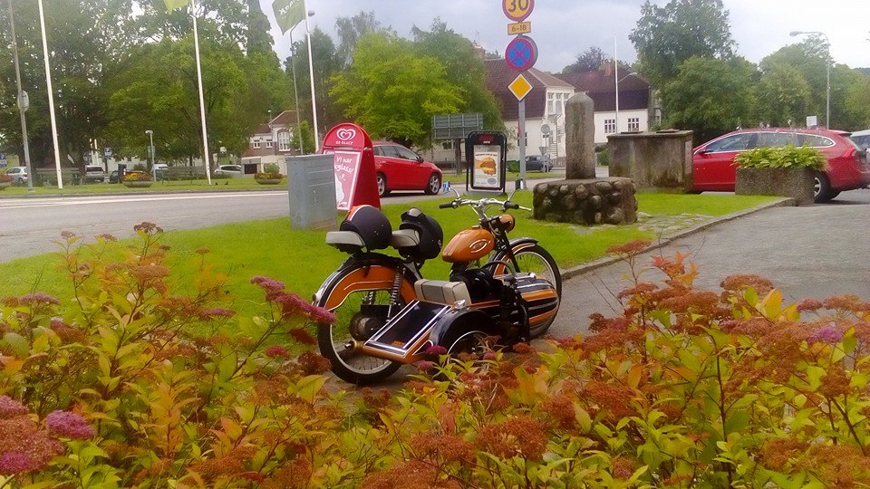 Men då vägar lutar olika är jag tvungen rekomendera dig någon form av snabb justeringsmöjlighet på lutningen!! (själv funderar jag på montera någon form av automatisk justering kanske luftdämpare?? eller någon justering kopplad till elmotor) Min sidovagn just nu nerplockad och för förlängning!! O motorgenomgång!! Ska jag vara riktigt ärlig hade de inte varit för barnen gillar åka hade den inte rullat mycket för skittråkig köra men riktig äkta kvalitetstid med barnen blir det så värt puttra lite långsammare än vanligt!! Perfekt till fiske badresor och soliga glassresor och picknick utflykter.. Ja o tror mig väcker stor uppmärksamhet hämta i skola eller dagis.. Har inte så mycket bilder slängde ihop mitt bygge på 2månader under viss tidspress som så ofta.. Finns väl en projekt sida på den under typ familjemoped??