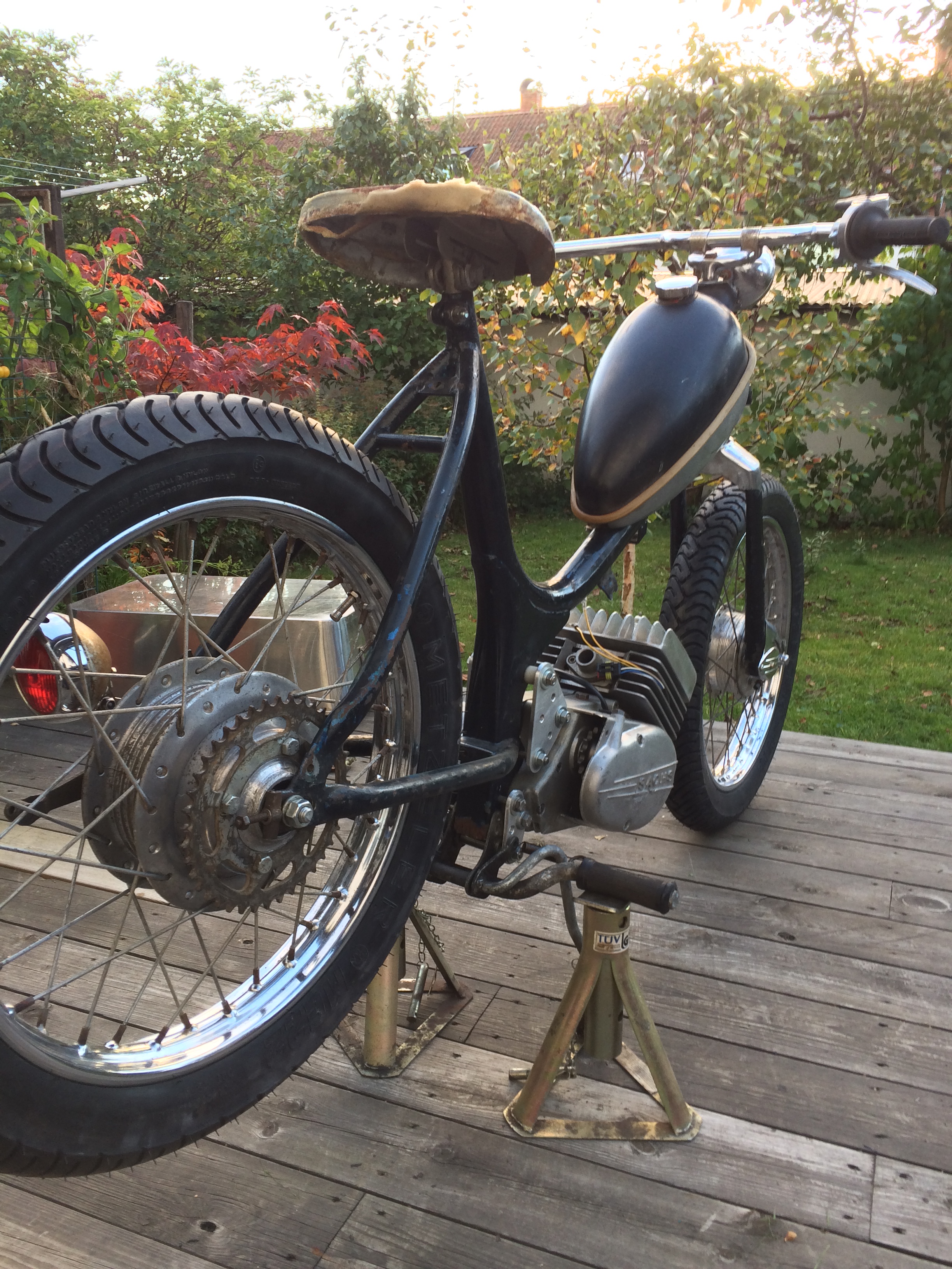 Har länge drömt om en lite snabbare Stummis (jag har haft några med Zündapp snurror på men det kändes bara fel...) och när det visade sig att det var halva priset att köpa en S-motor jämfört med en EKF så var det bara att slå till.