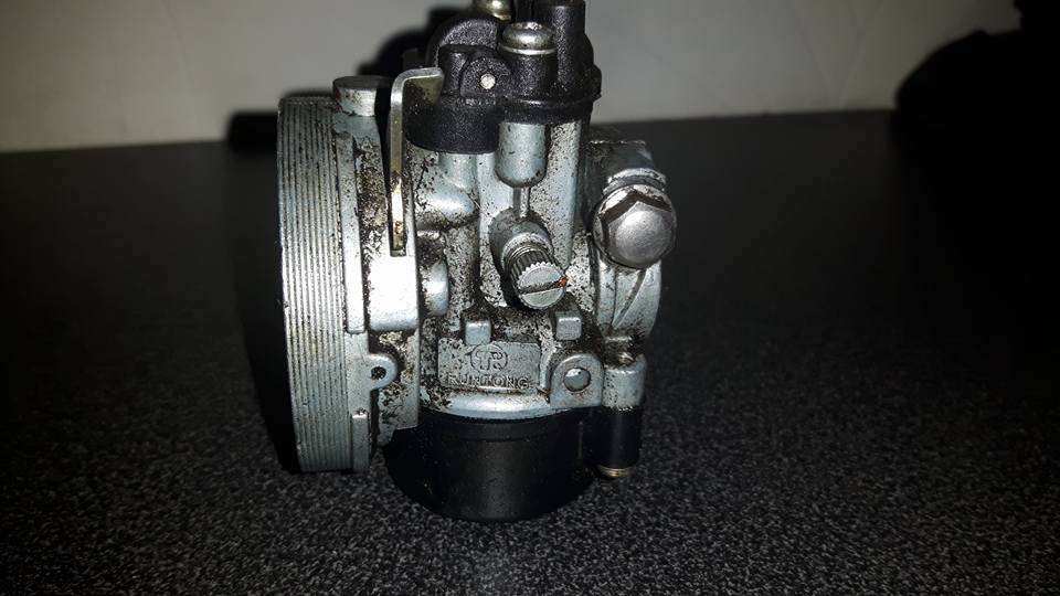 Dagen efter togs bulten bort och ny provkörning jodå bättre men borde gå än bättre.. Loss med förgasaren en 15mm fabrikat "Runtong"(säger inte mig något alls) men en förgasare med kläm-anslutning på ca22mm. Ja nästa led av bovarna funnet!! För att para ihop förgasaren med insuget på 10mm invändigt och 15mm utvändigt låg det 3 rörbitar och orange silikon ja mycket möjligt det vart tätt och förgasaren bara felbestyckad?? Men muffade på en 17mm Ubåt ställbart är gott i alla fall.. Ny provkörning ja 53km mer än hyfsat under dessa omständigheter. Efter höjt nålen ett hack gick den än bättre. Samma topphastighet men trevligare väg dit! Ja nu hade väl 53km kunnat räcka men tråkigt behöva växla ner till 2an i backarna eller om det bara är jag som är för fet??