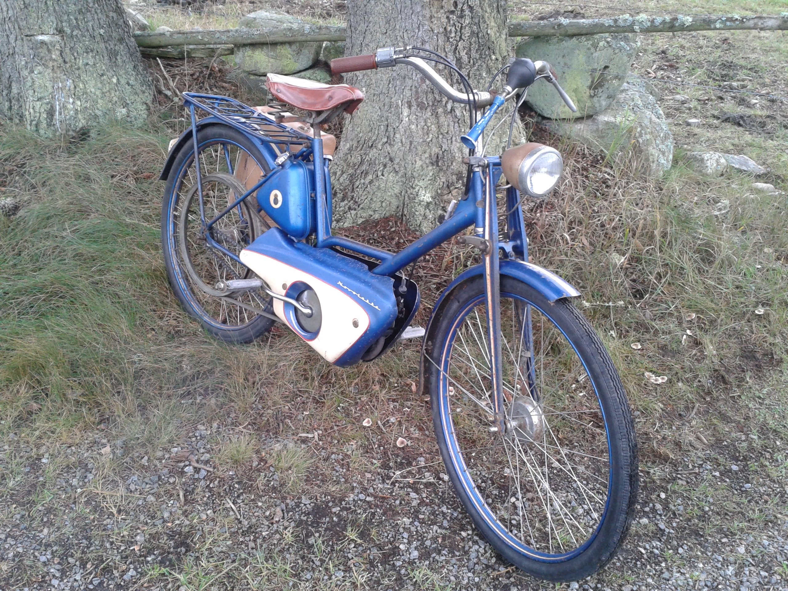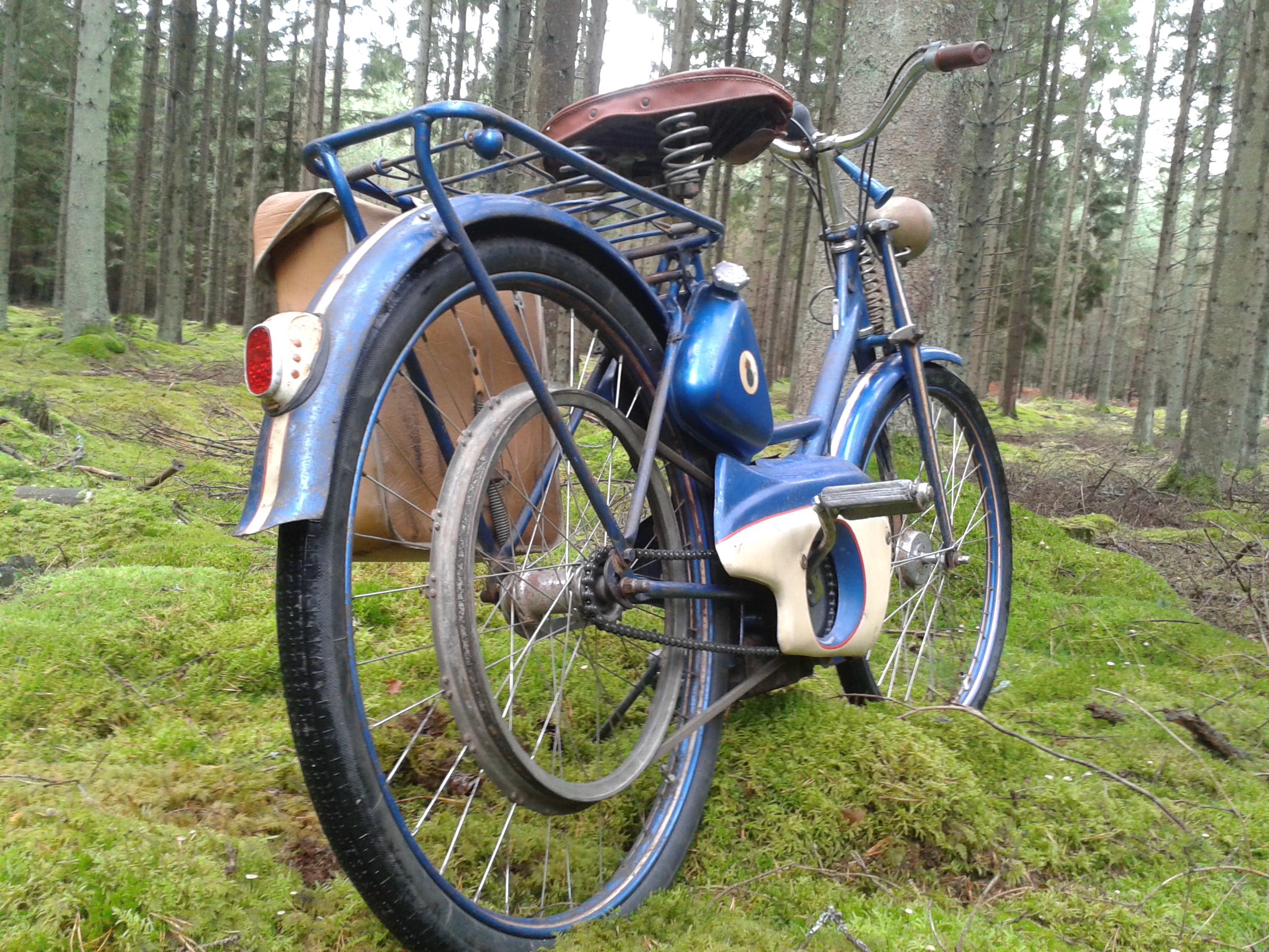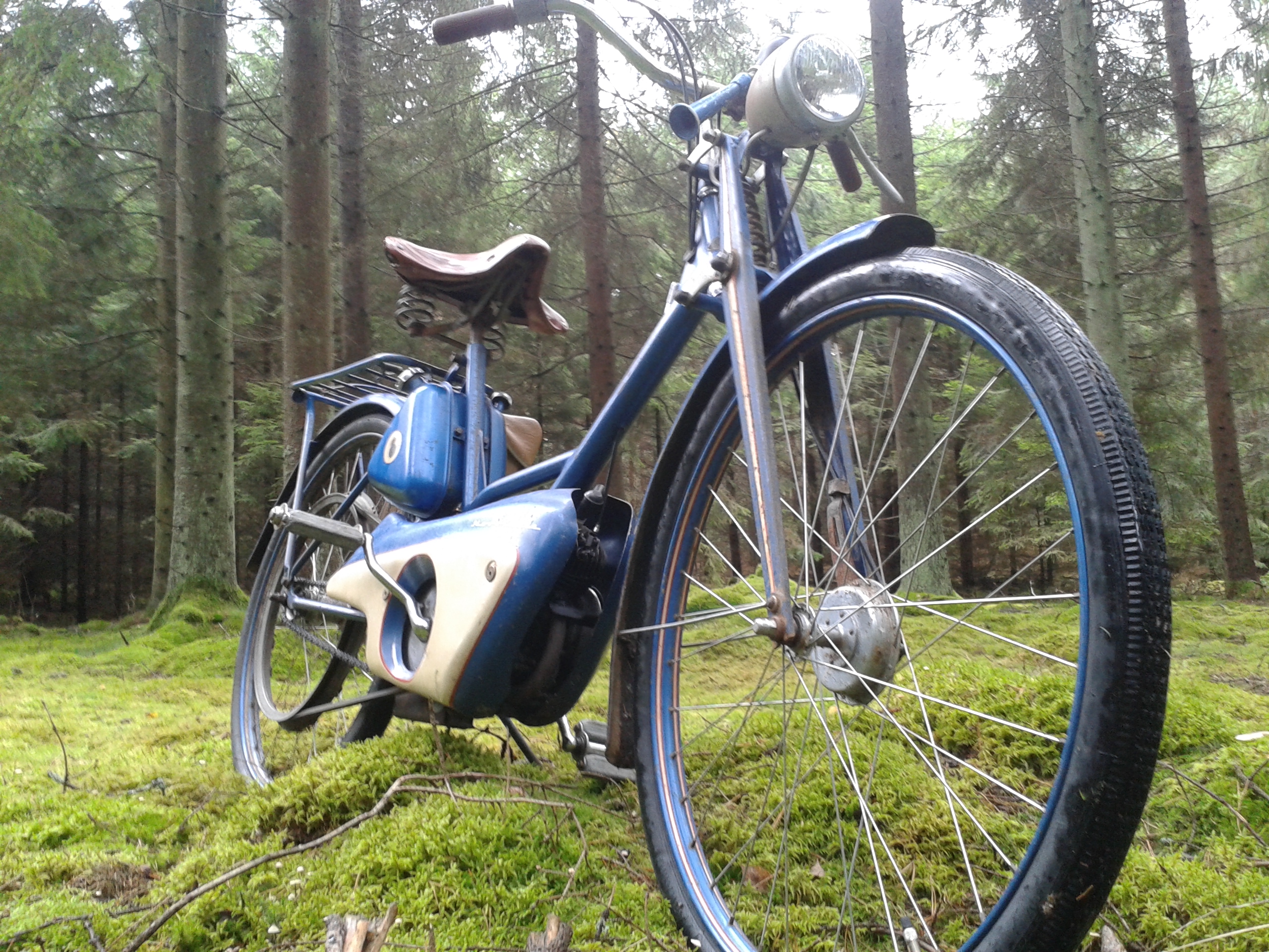 Det är den gamla modellen från 1954 med 26" hjul och kulkoppling, den första mopeden där Husqvarna gjorde både motorn och ramen själva!