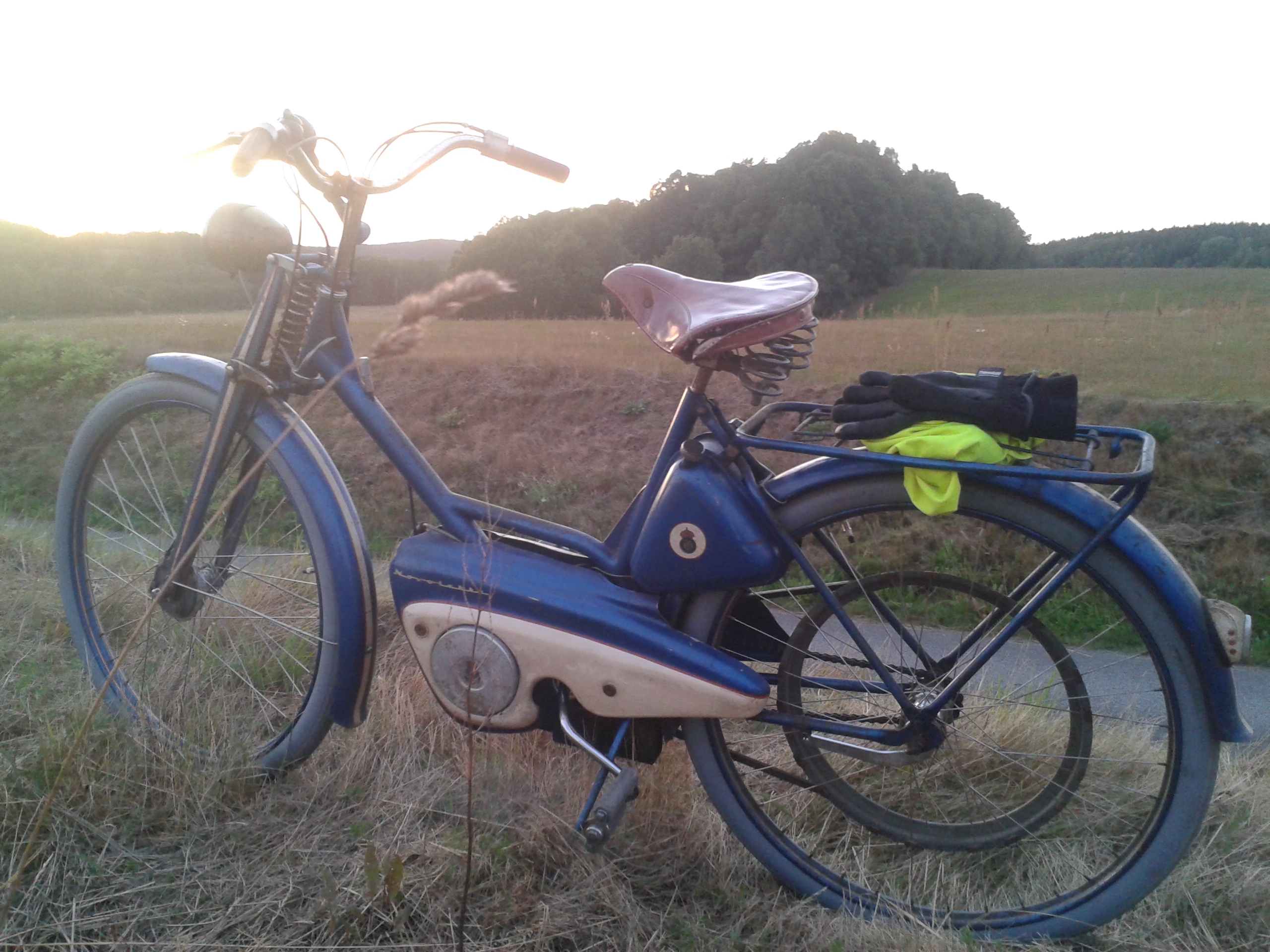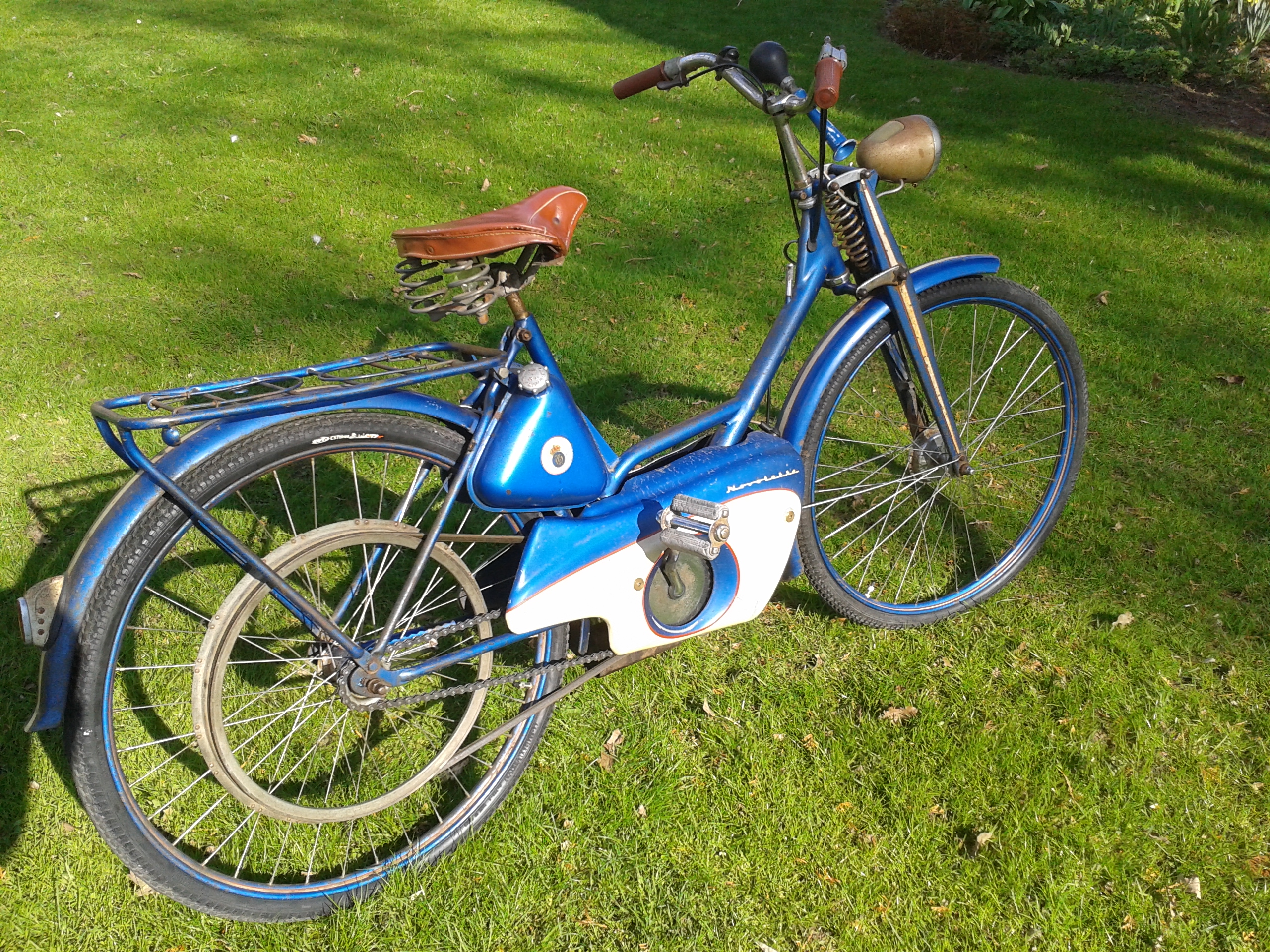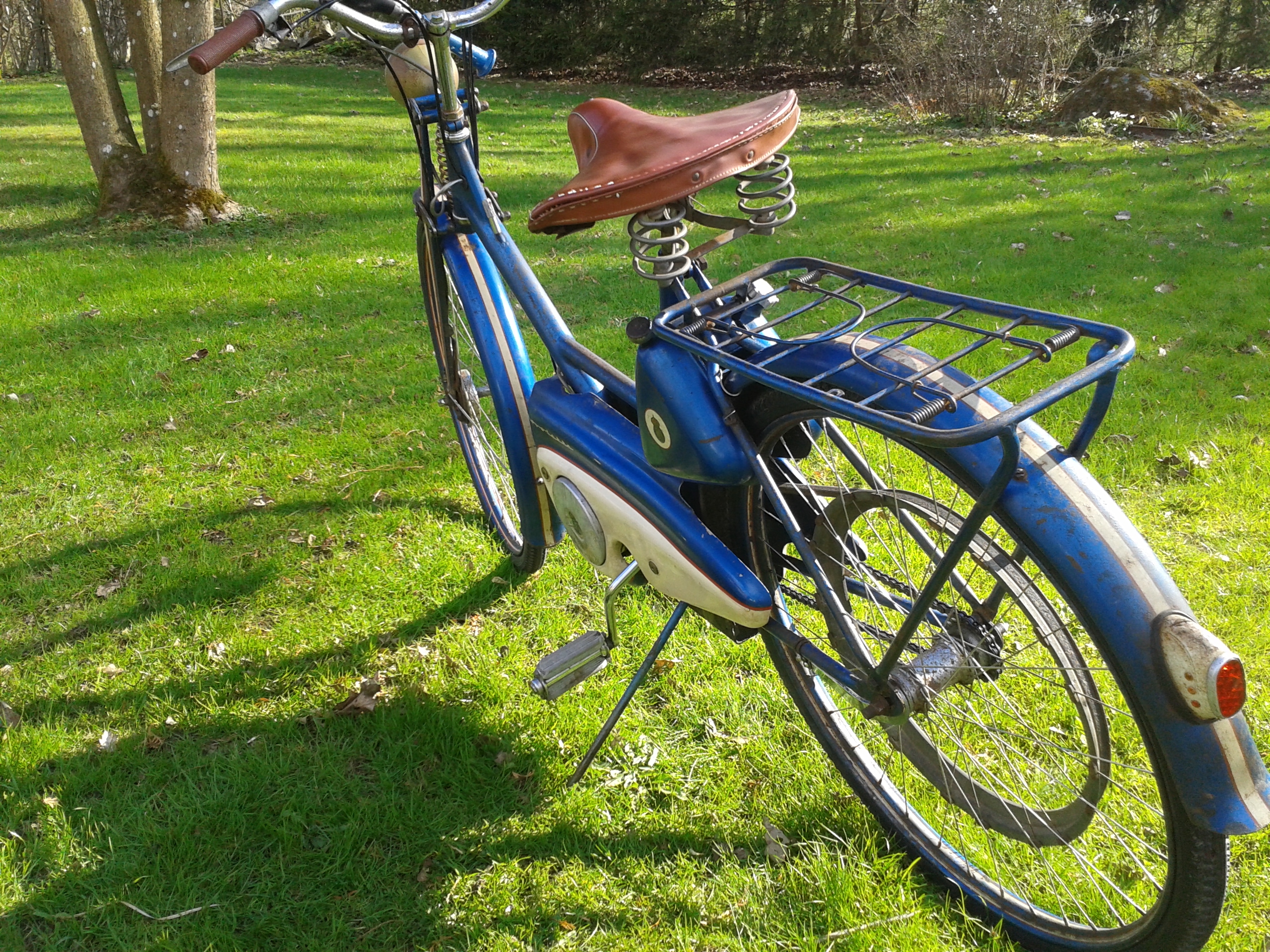 Det är den gamla modellen från 1954 med 26" hjul och kulkoppling, den första mopeden där Husqvarna gjorde både motorn och ramen själva!