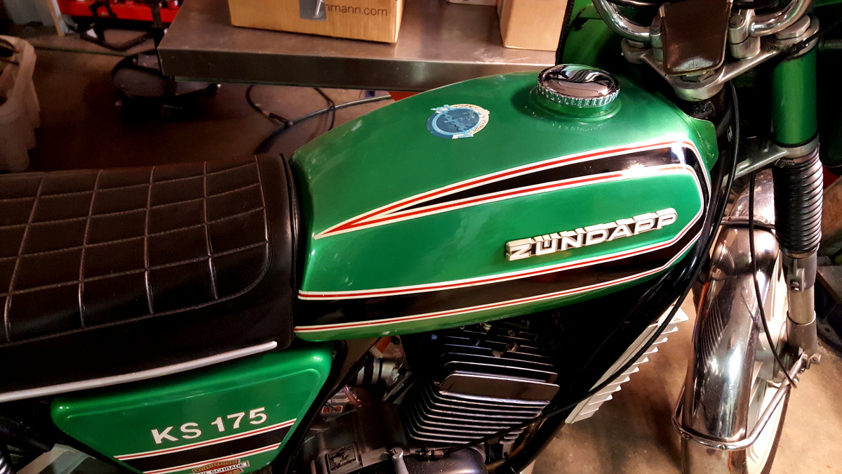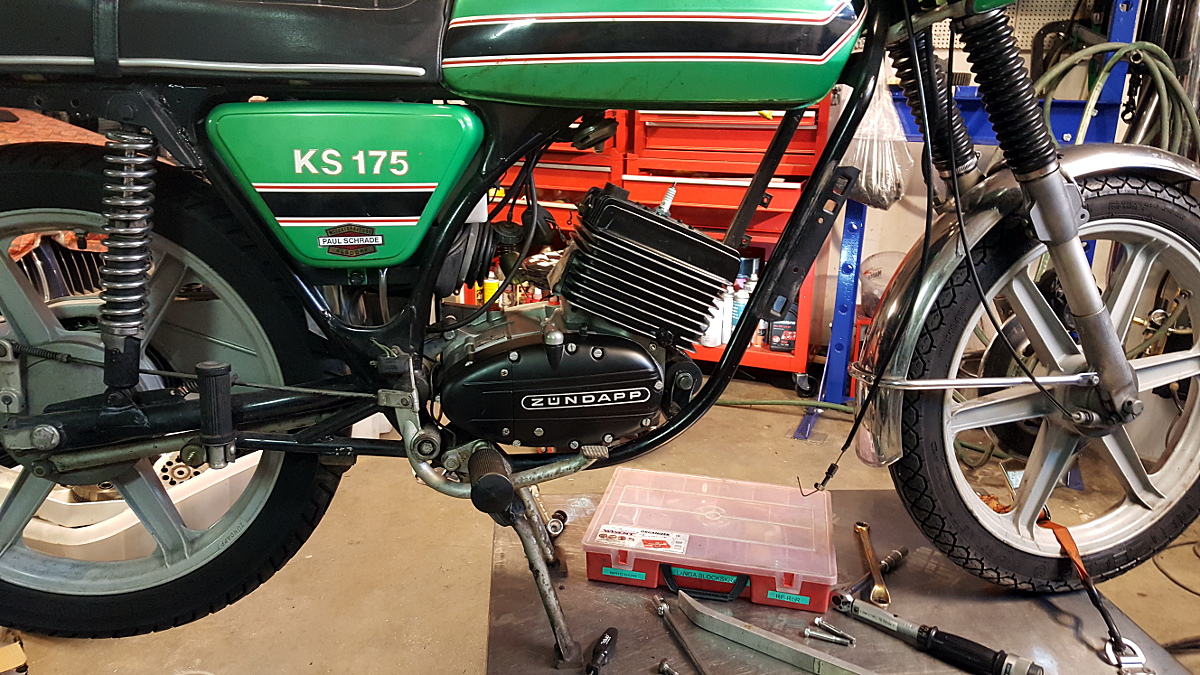 Jag håller på att renovera en KS 175 och har precis blivit klar med motorn som åter är på plats. Hojen ska lackas om men först ska jag se till att den går som den ska.