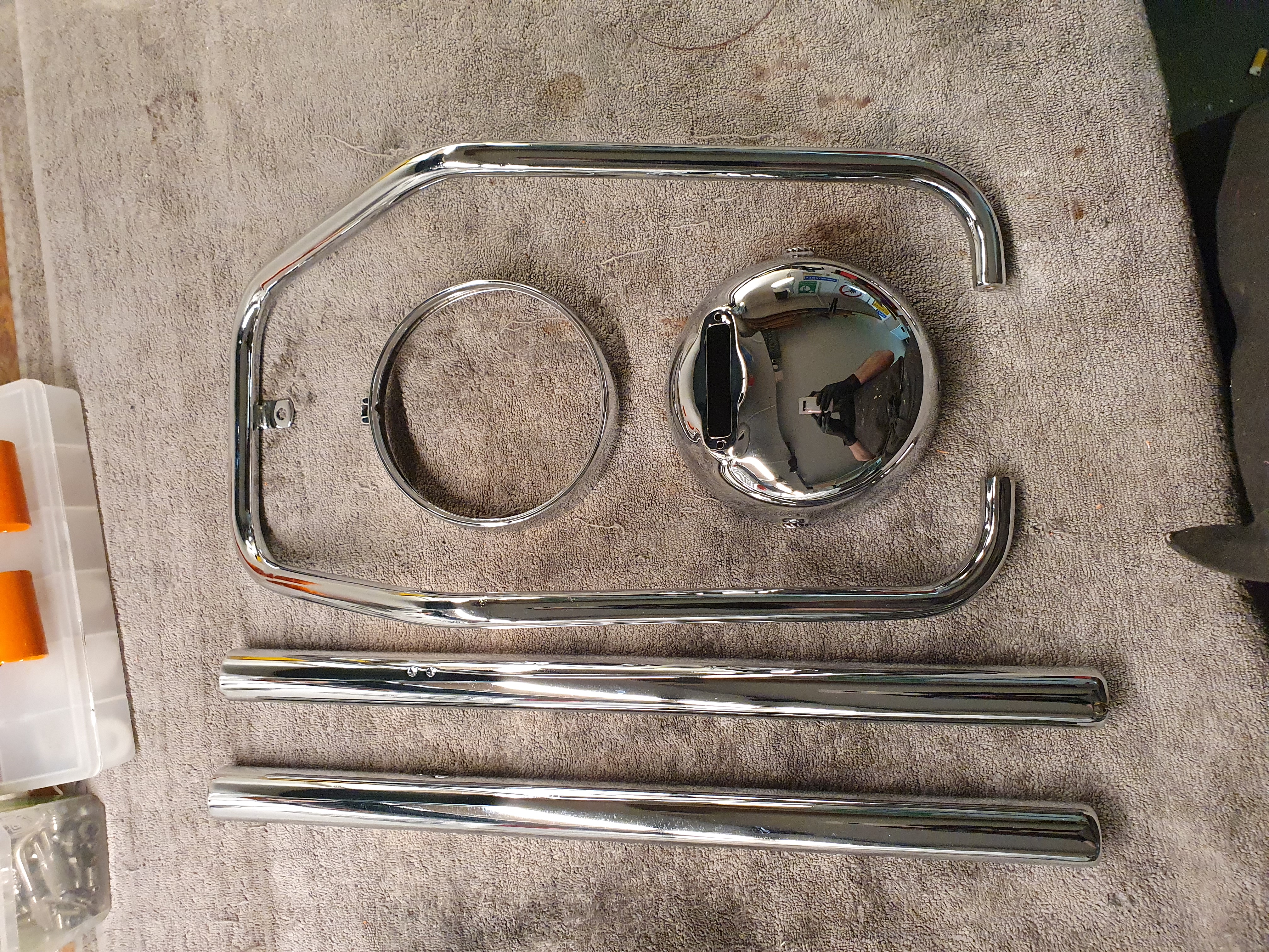 Måste ändå kroma lyktan och staget över motorn..