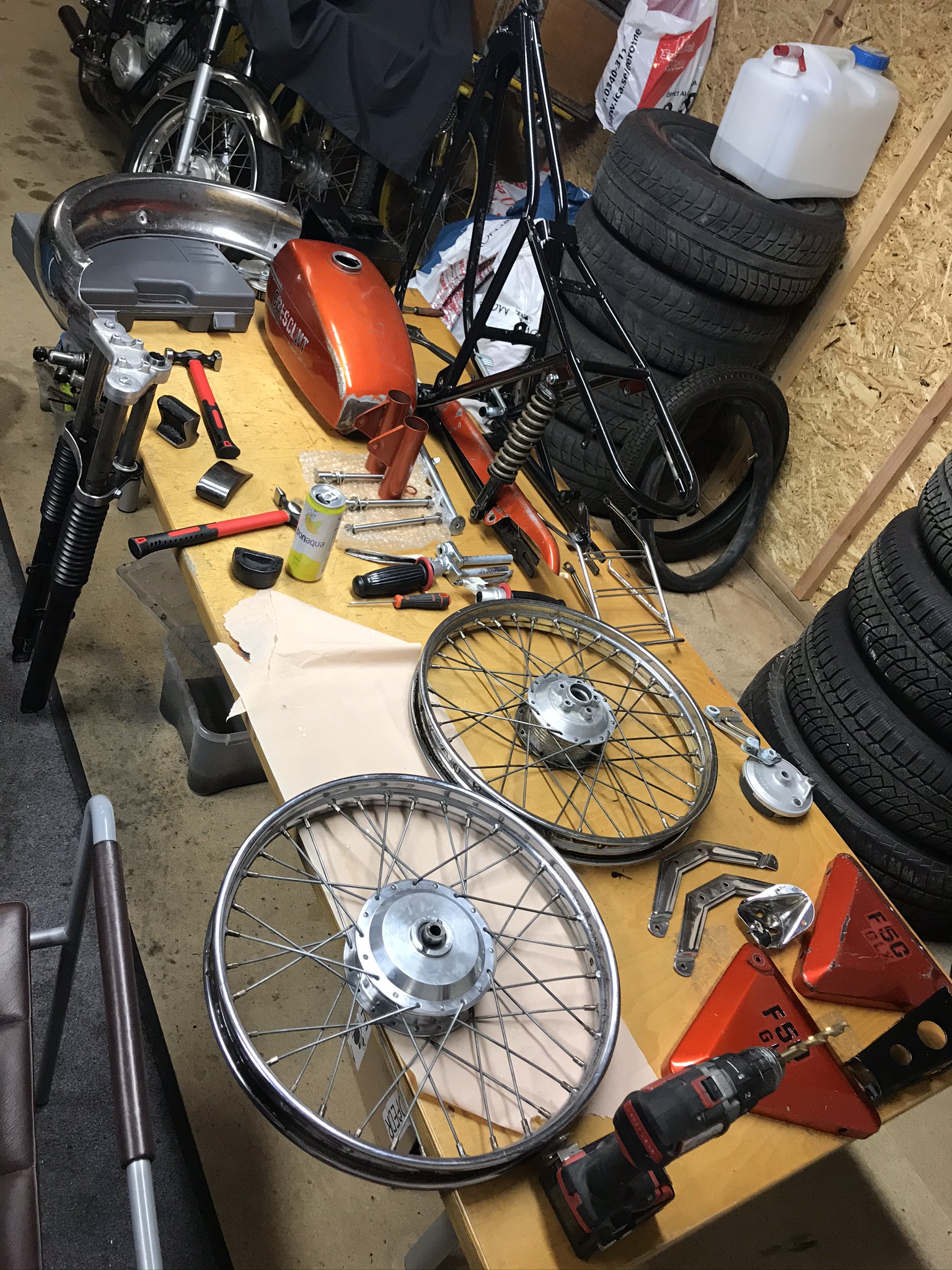 Sökande efter rätt framlampa, hastighetsmätare och om möjligt ett par sidokåpor till fortsatte och jag försökte även hitta bättre delar än de jag hade för att ha ett bättre utgångsläge.
