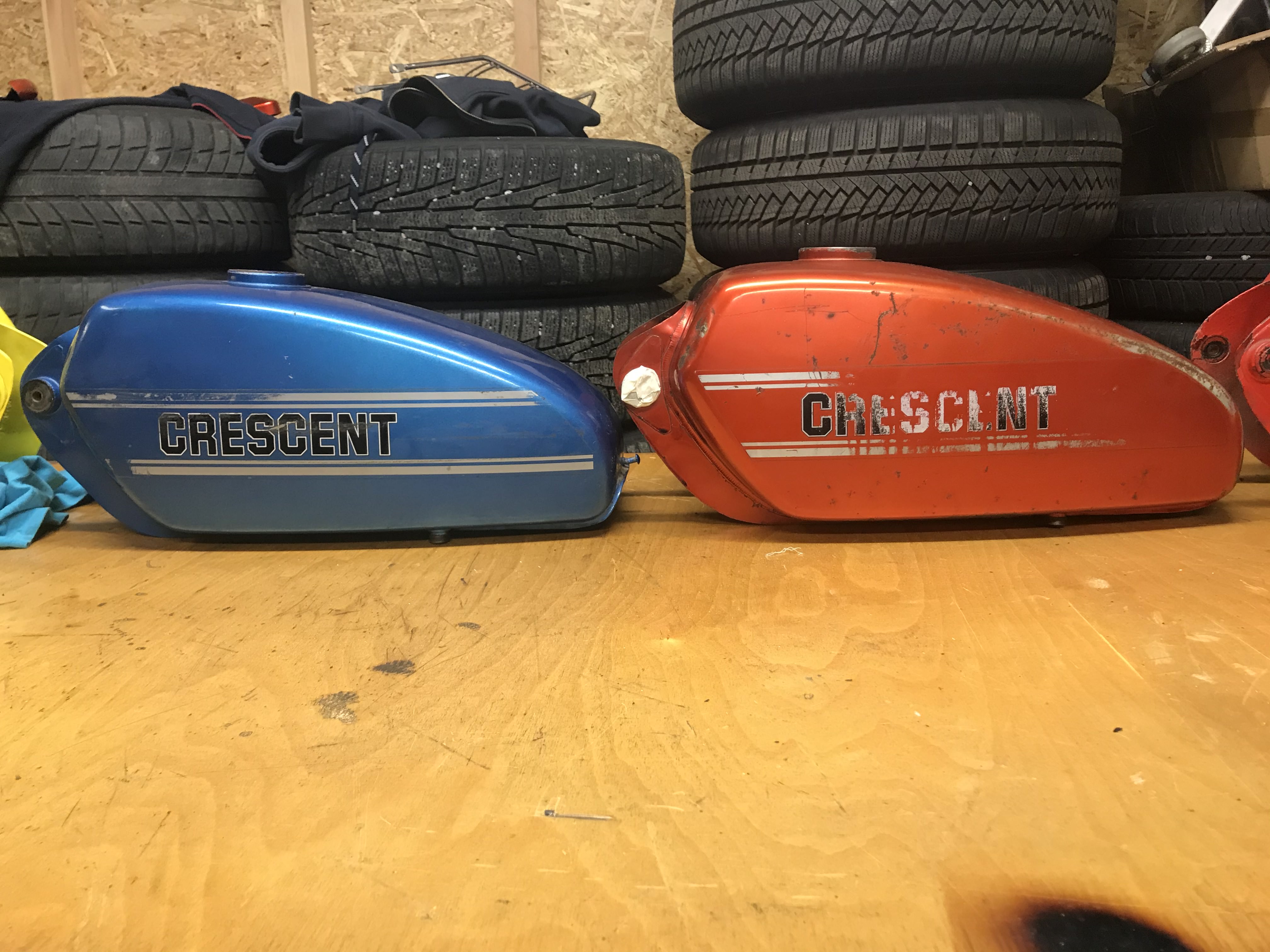 Tanken jag fick tag i visade sig vara lite special (satt på en glx). Det är den bredare E-type tanken som måste varit en specialbeställning när moppen va ny.