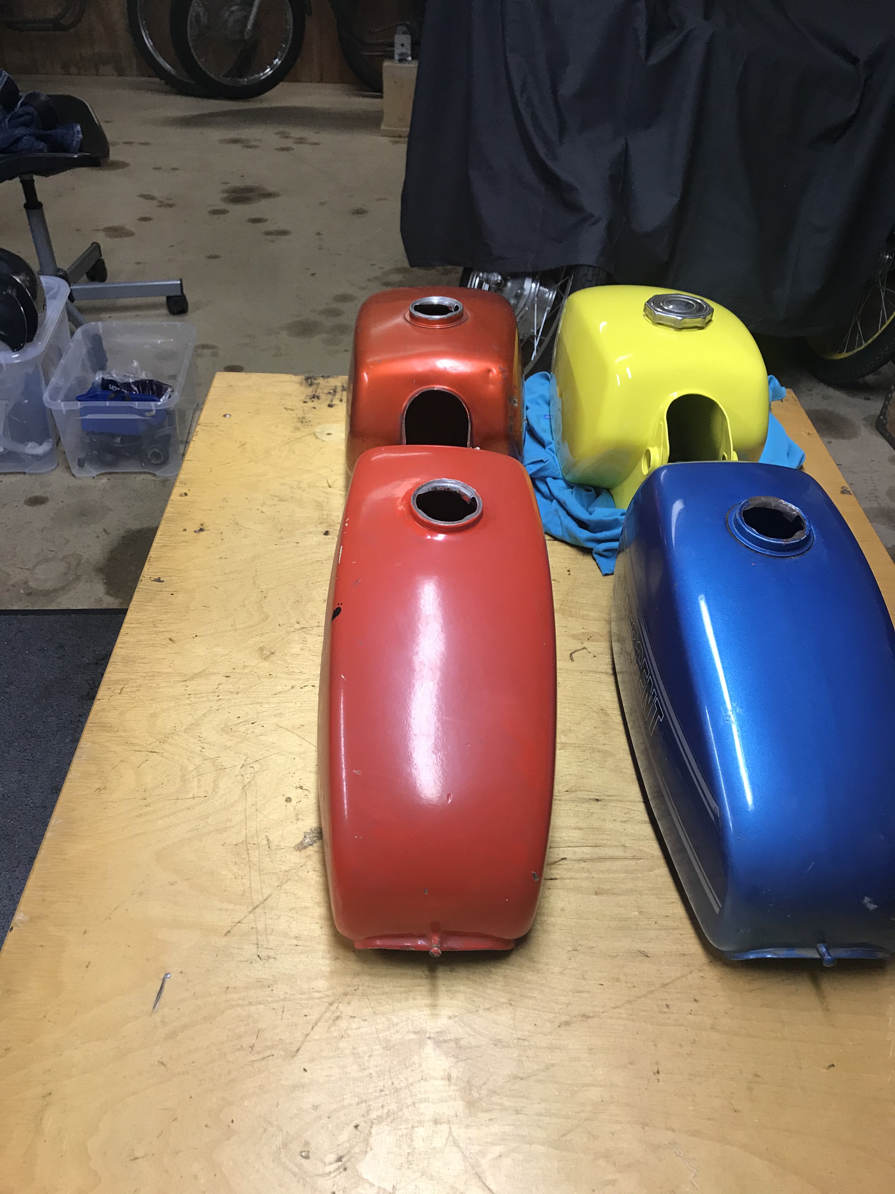 Den gula är E-type/Isdt, röd och blå tank är F50